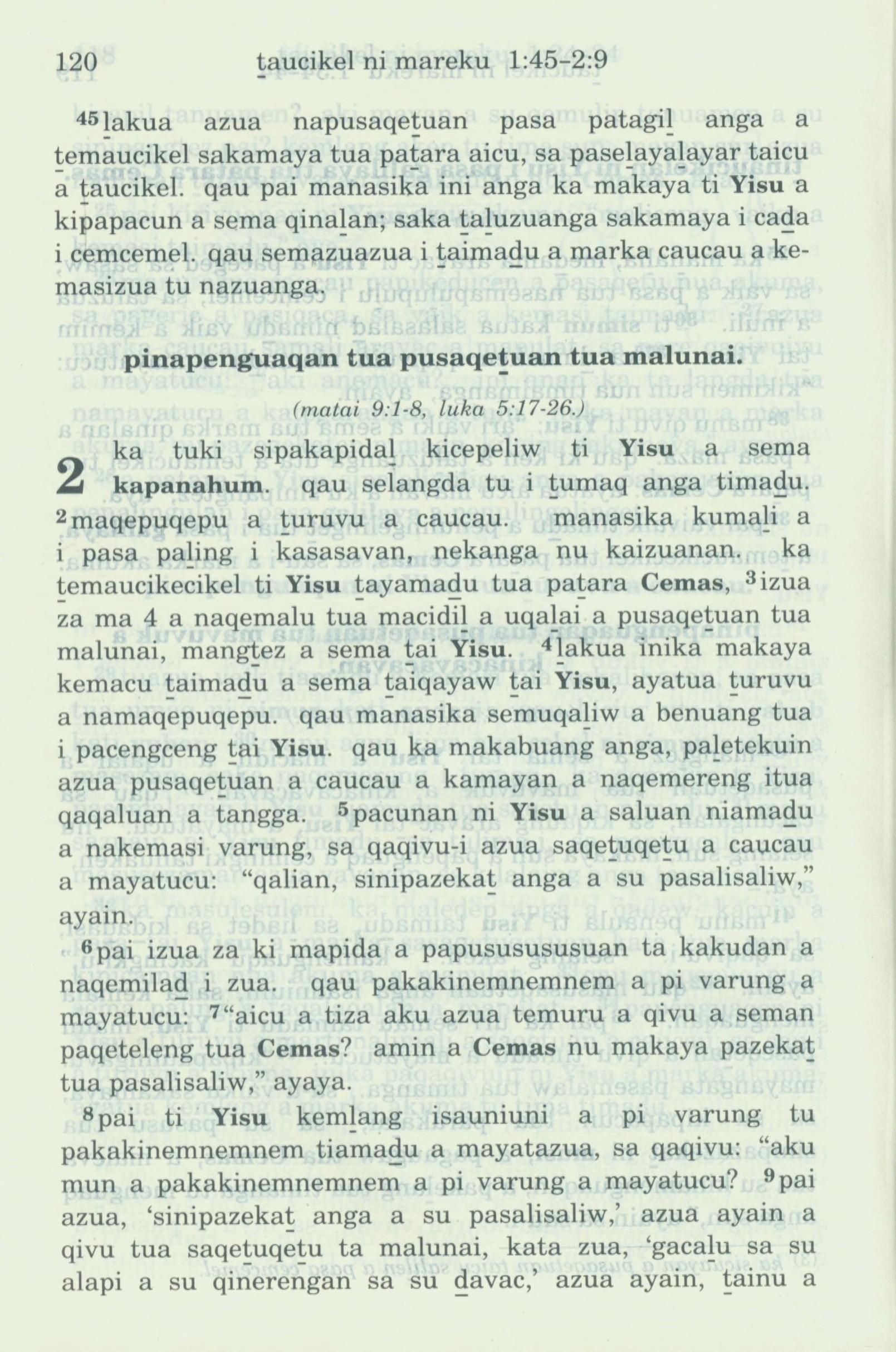 1993年新旧约全书 马可福音 1 章 45 节到 2 章 9 节