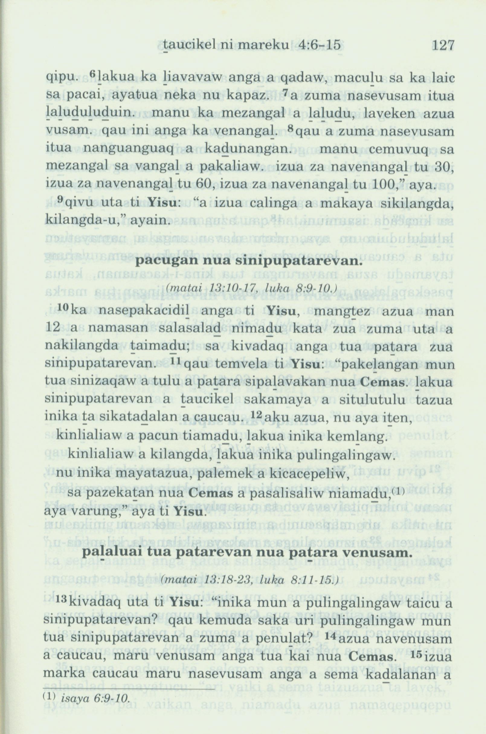 1993年新旧约全书 马可福音 4 章 6 节到 4 章 15 节