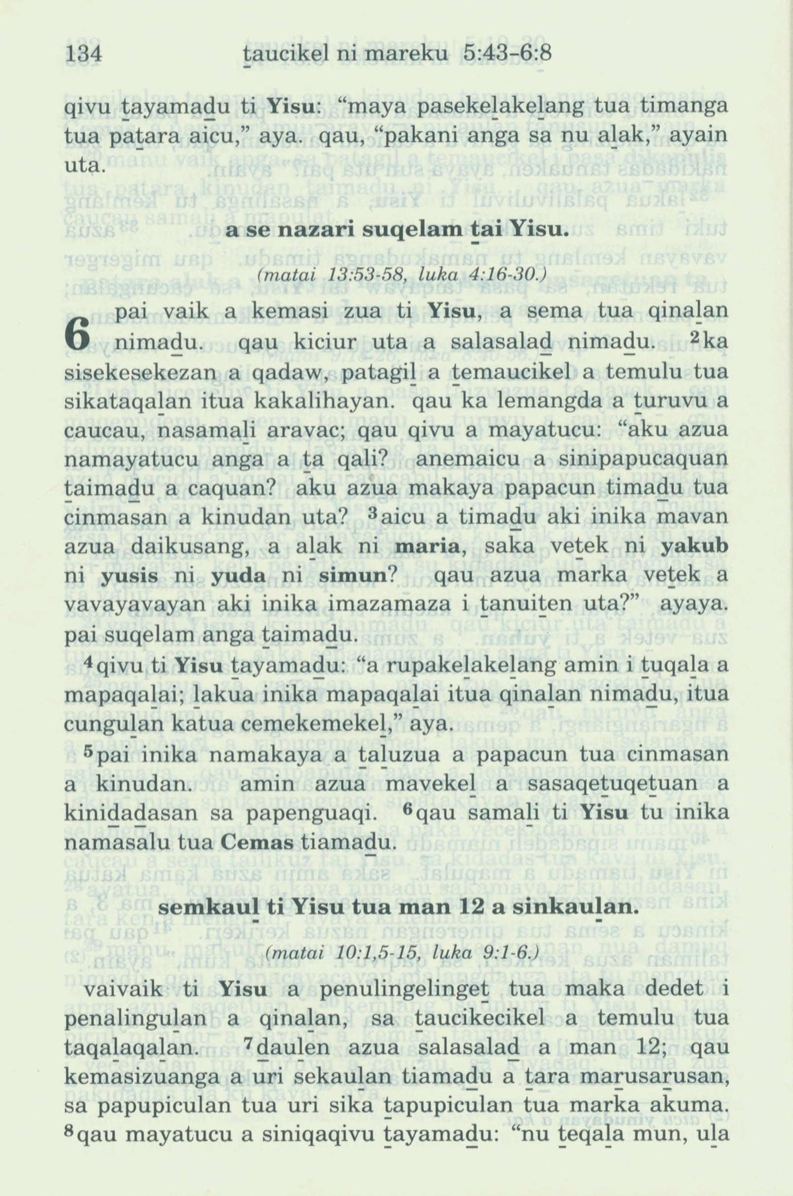 1993年新旧约全书 马可福音 5 章 43 节到 6 章 8 节