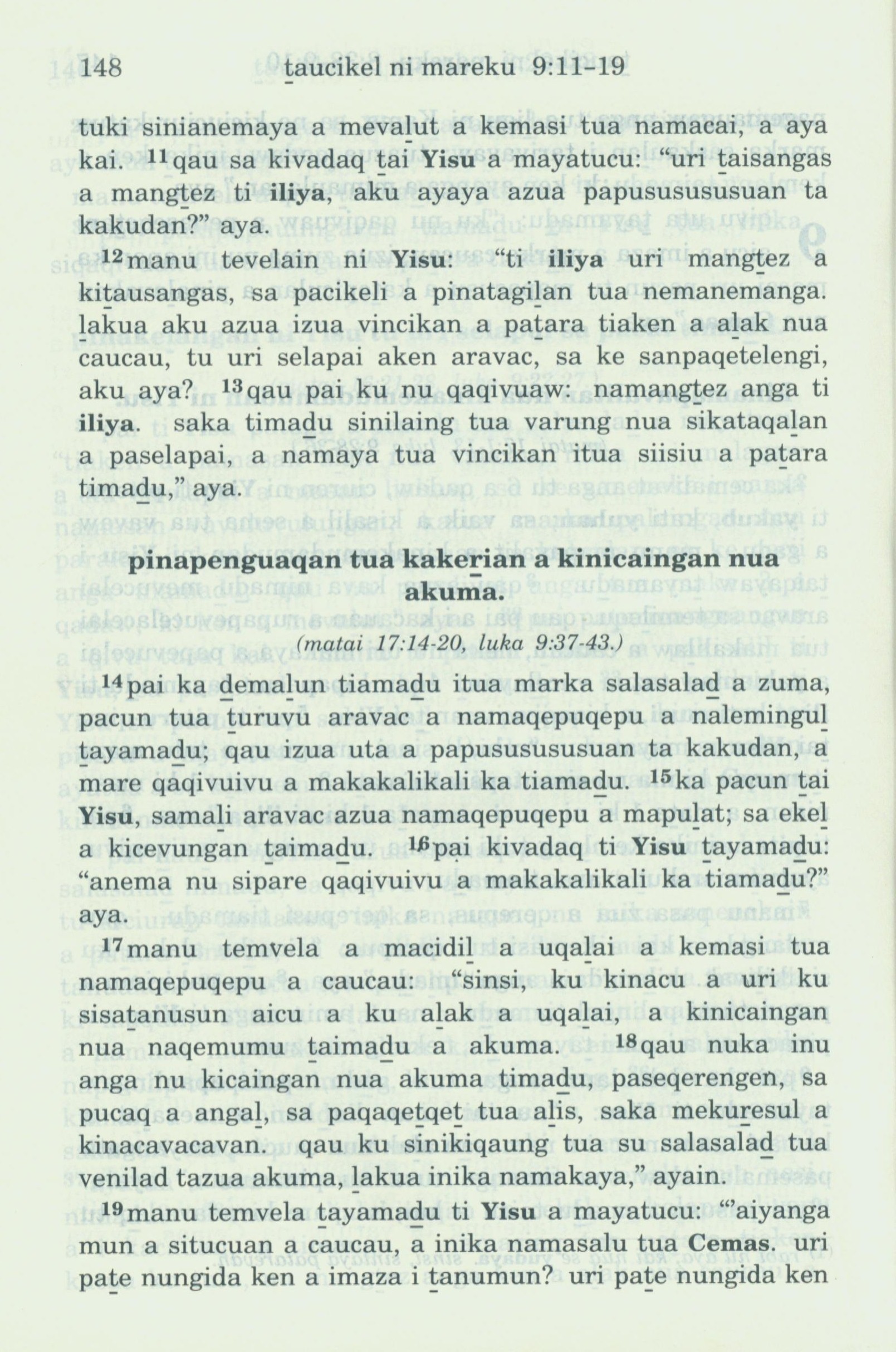 1993年新旧约全书 马可福音 9 章 11 节到 9 章 19 节