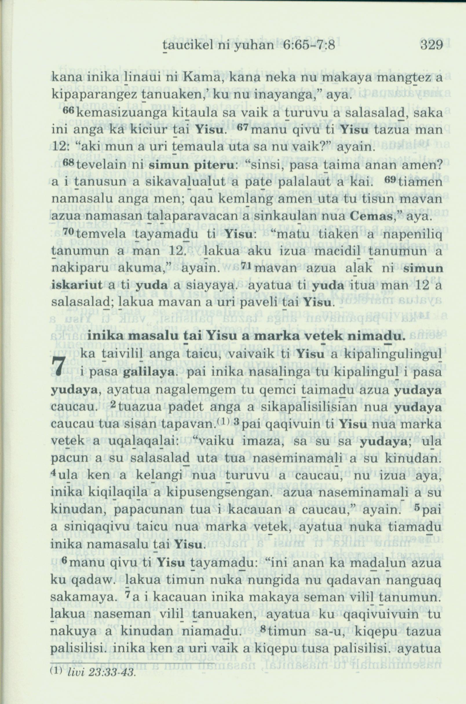 1993年新旧约全书 约翰福音 6 章 66 节到 7 章 8 节