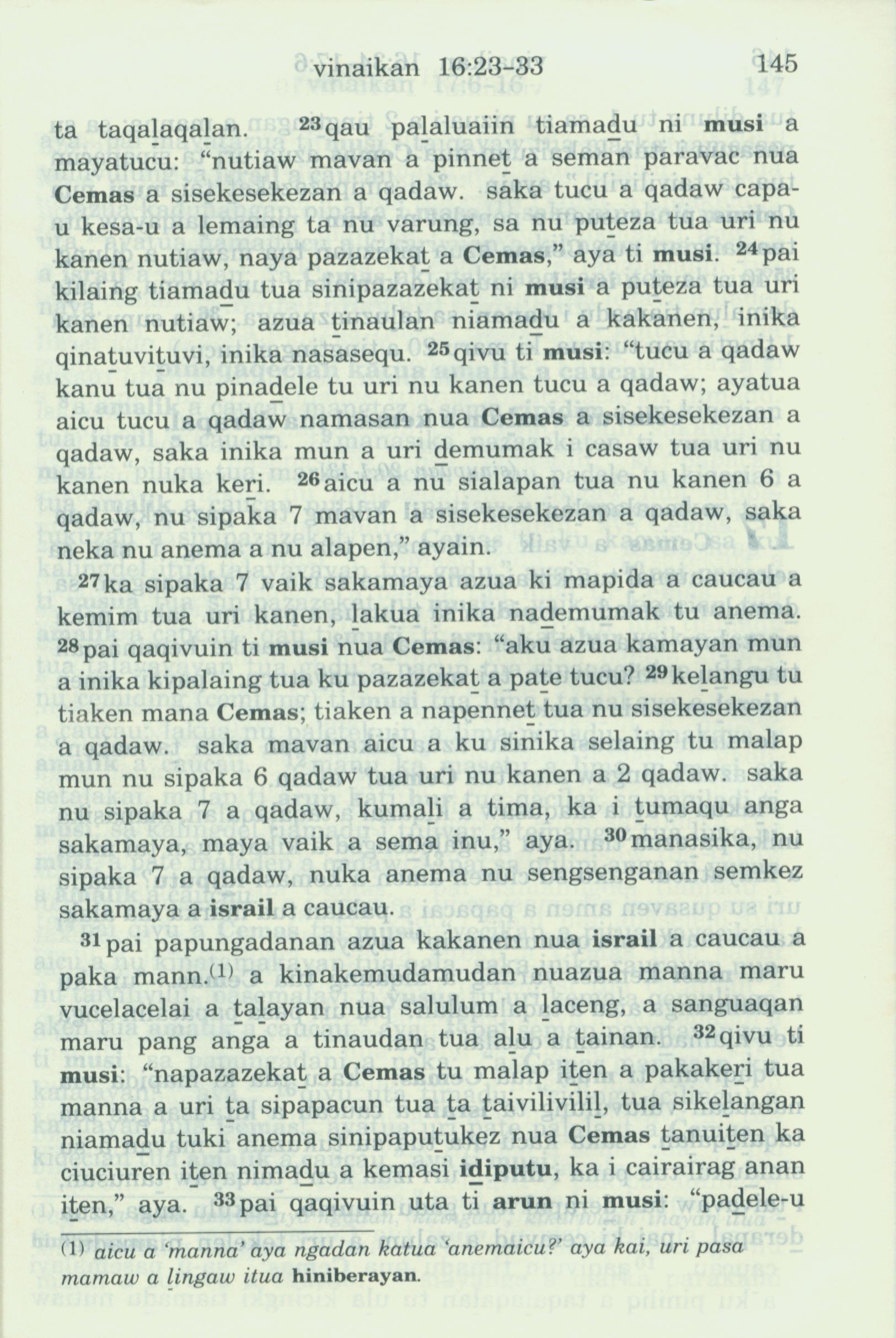 1993年新旧约全书 出埃及记 16 章 23 节到 16 章 33 节