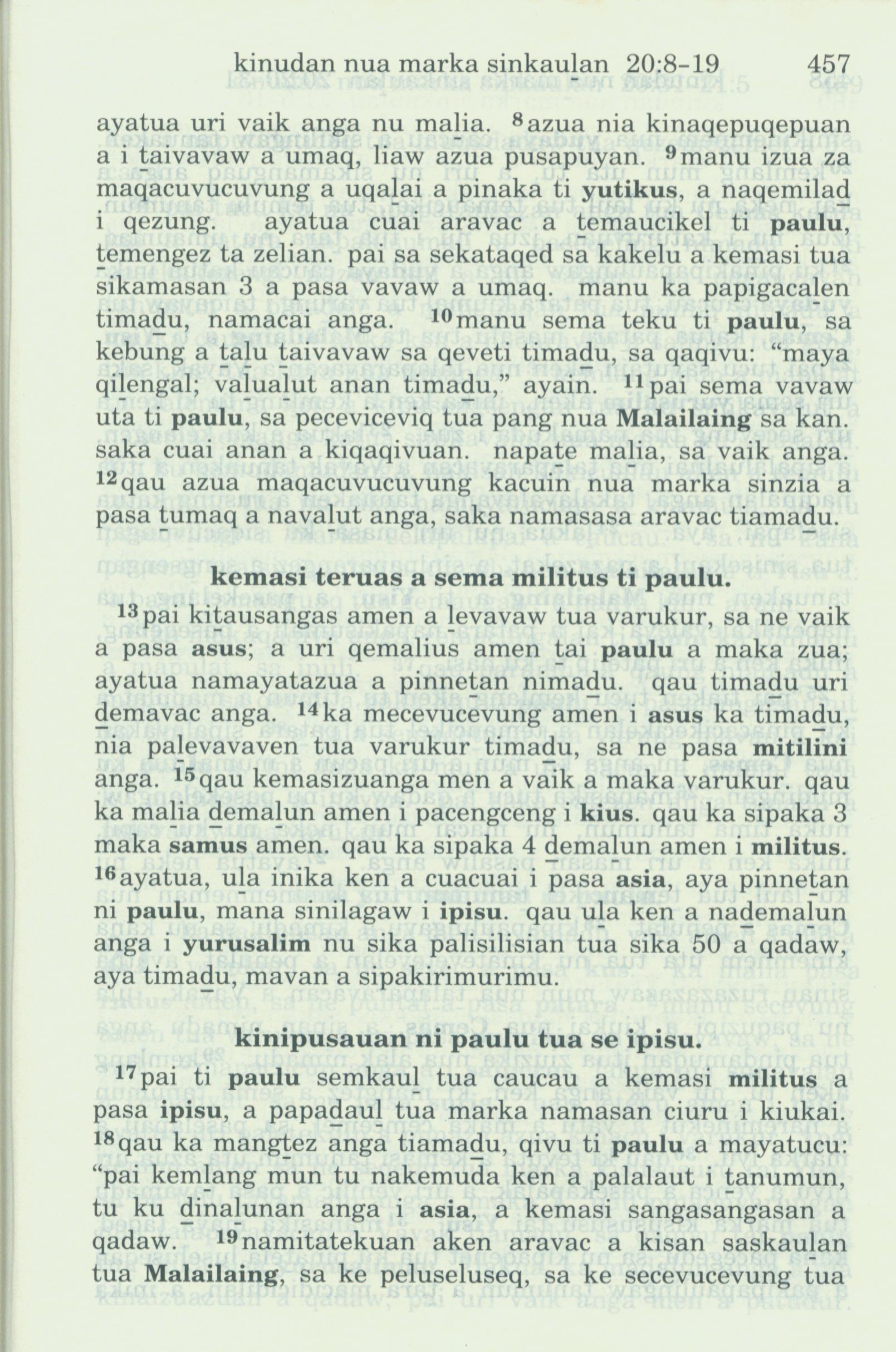 1993年新旧约全书 使徒行传 20 章 8 节到 20 章 19 节