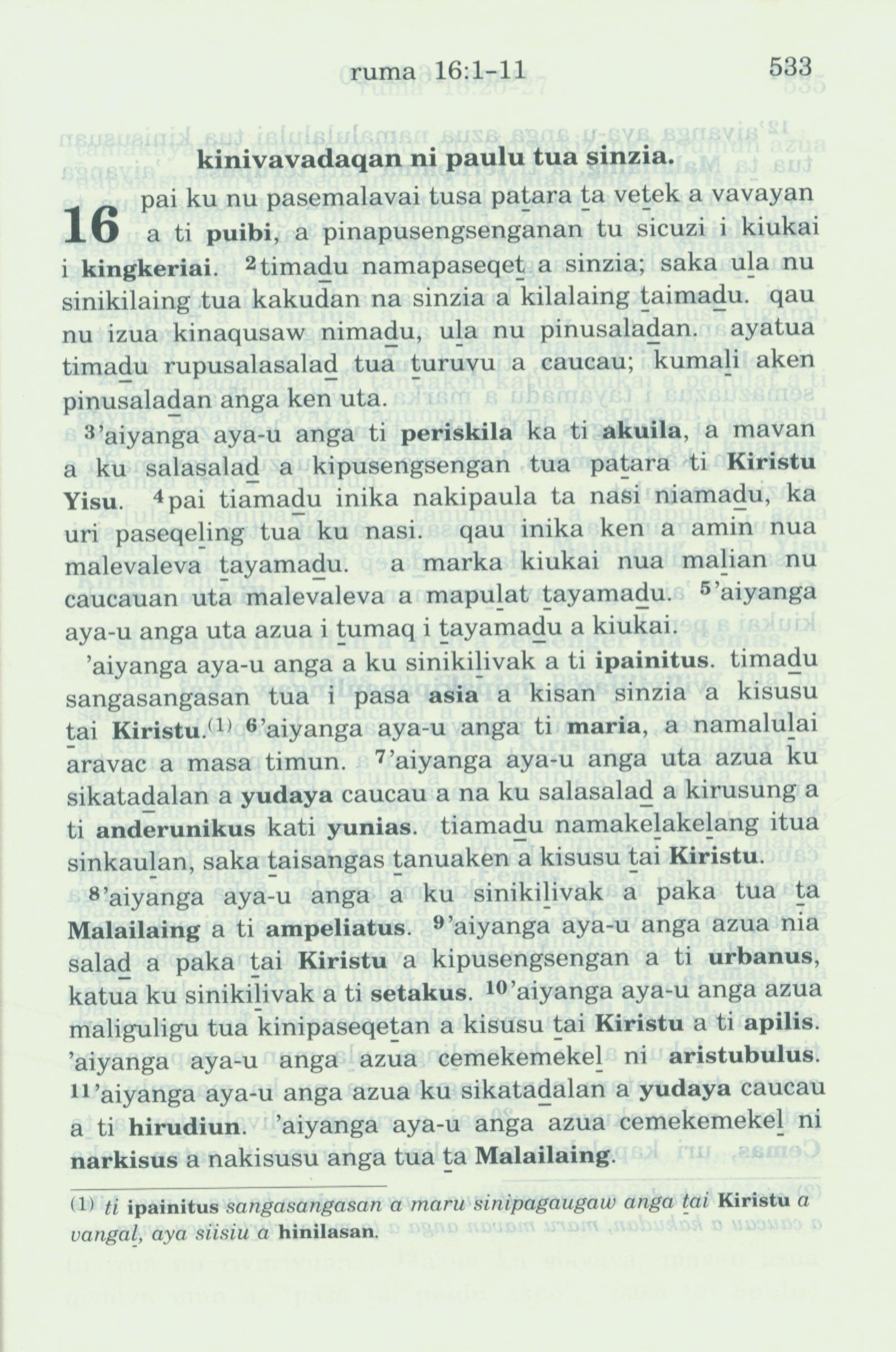 1993年新旧约全书 罗马书 16 章 1 节到 16 章 11 节