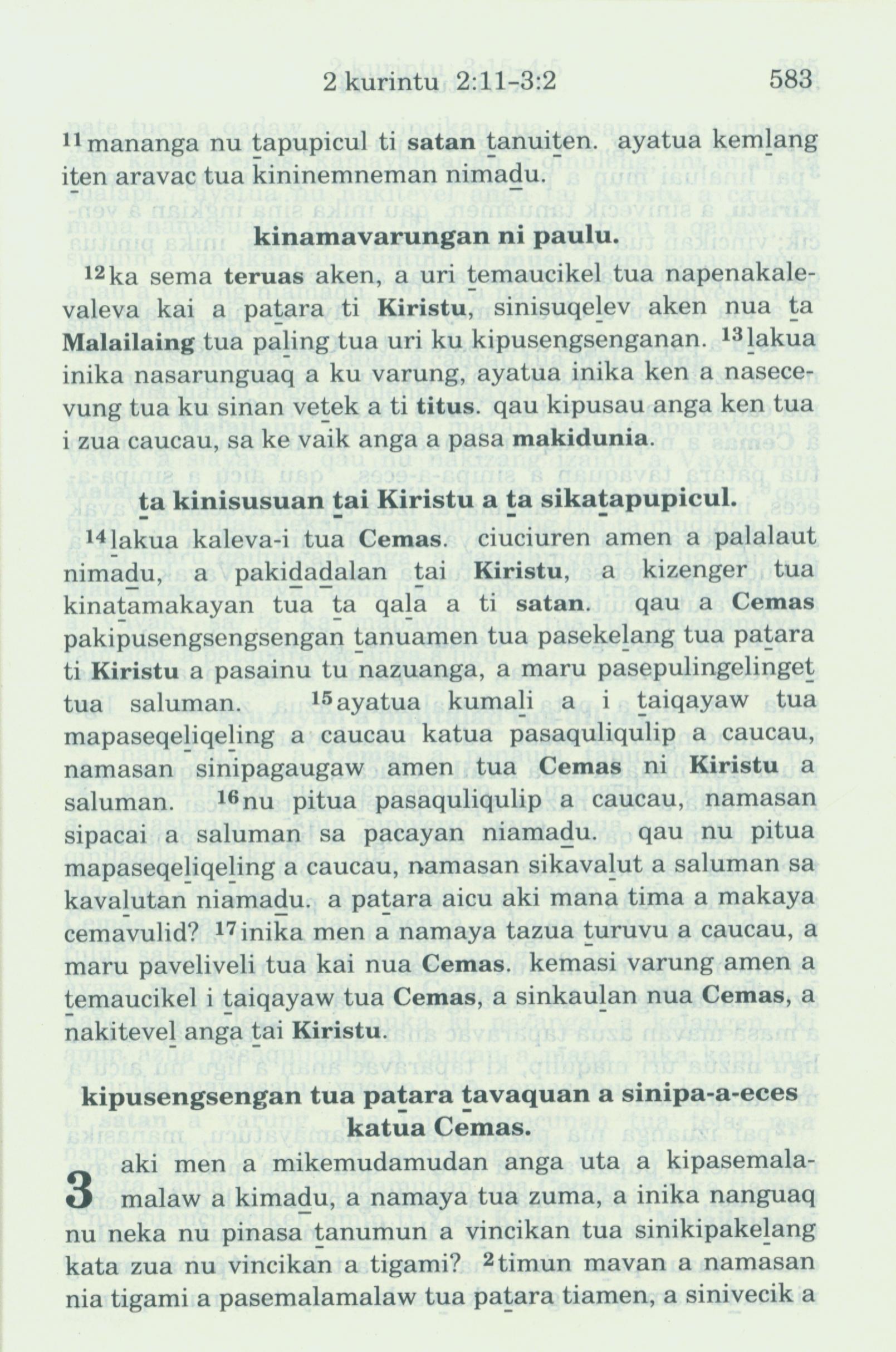 1993年新旧约全书 哥林多后书 2 章 11 节到 3 章 2 节