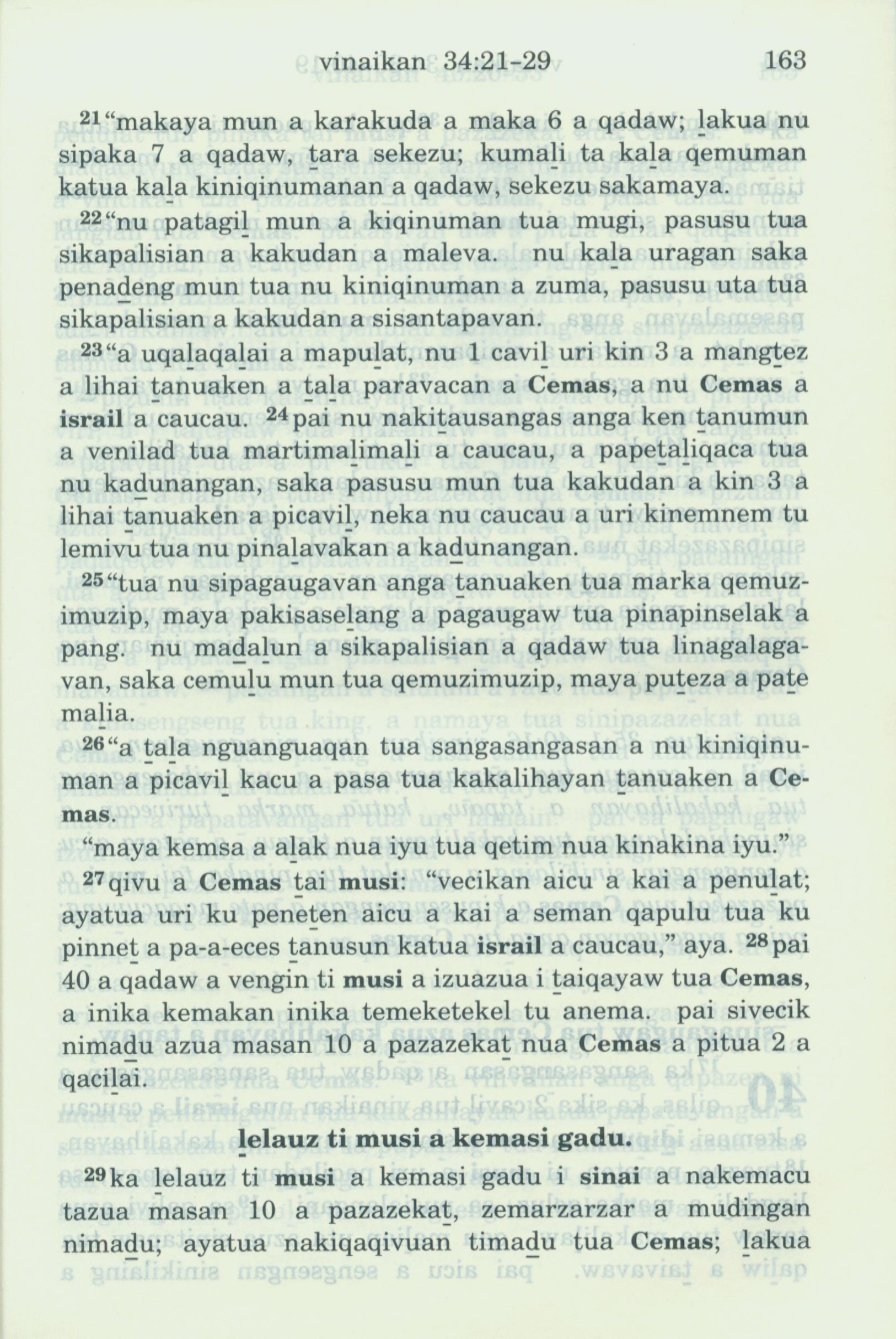 1993年新旧约全书 出埃及记 34 章 21 节到 34 章 29 节