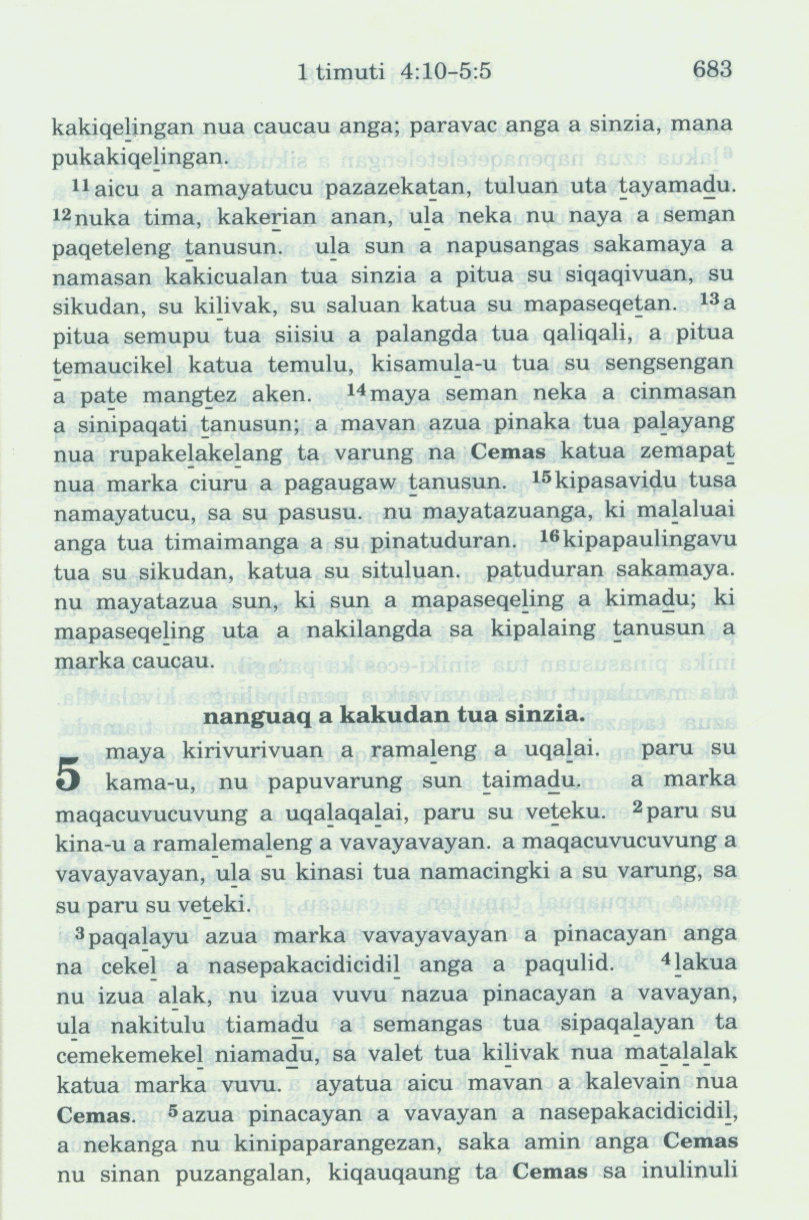 1993年新旧约全书 提摩太前书 4 章 11 节到 5 章 5 节