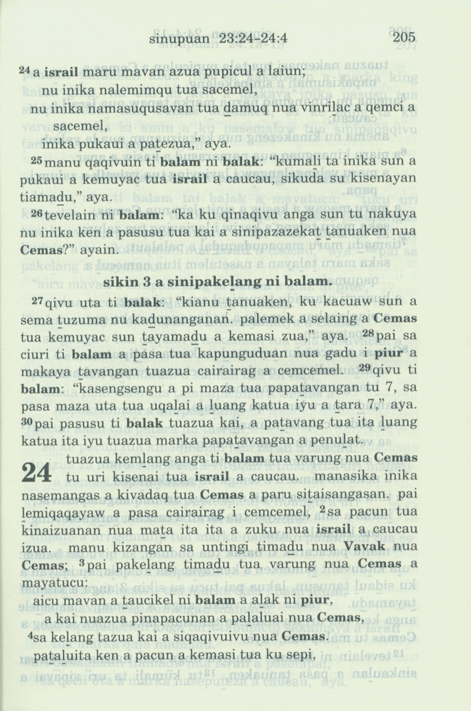 1993年新旧约全书 民数记 23 章 24 节到 24 章 4 节