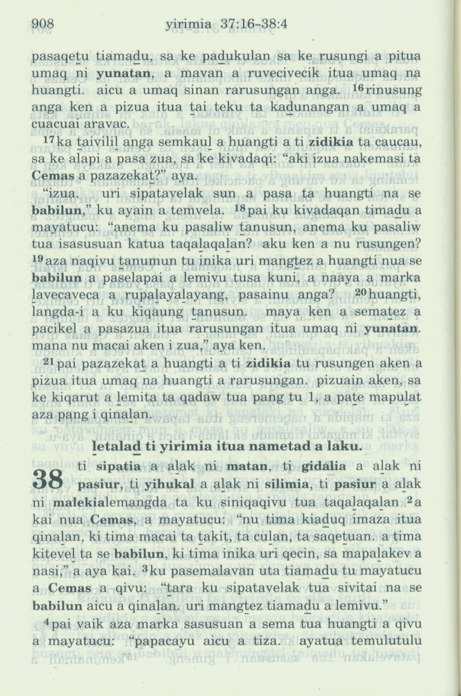 1993年新旧约全书 耶利米书 37 章 16 节到 38 章 4 节