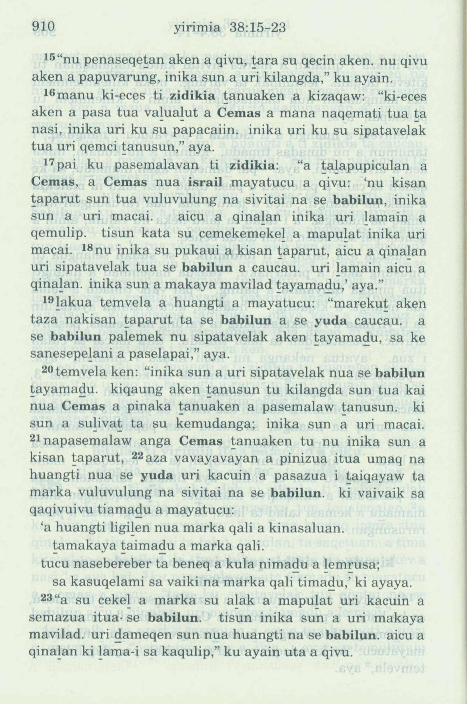 1993年新旧约全书 耶利米书 38 章 15 节到 38 章 23 节