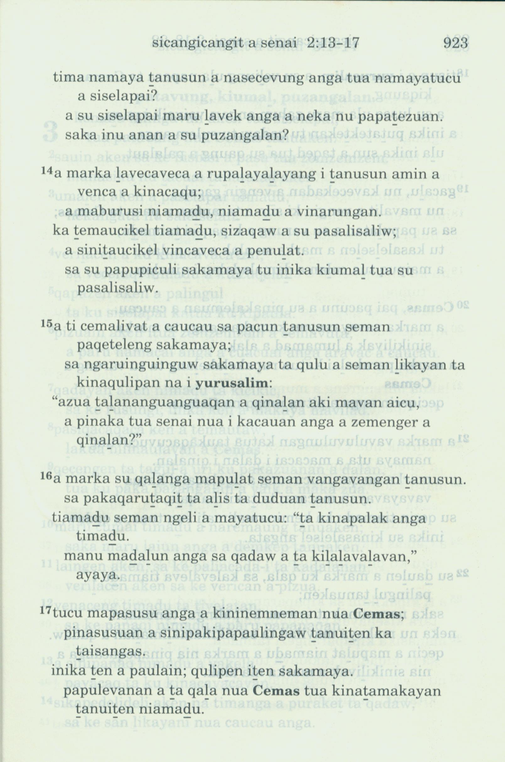 1993年新旧约全书 耶利米哀歌 2 章 14 节到 2 章 17 节