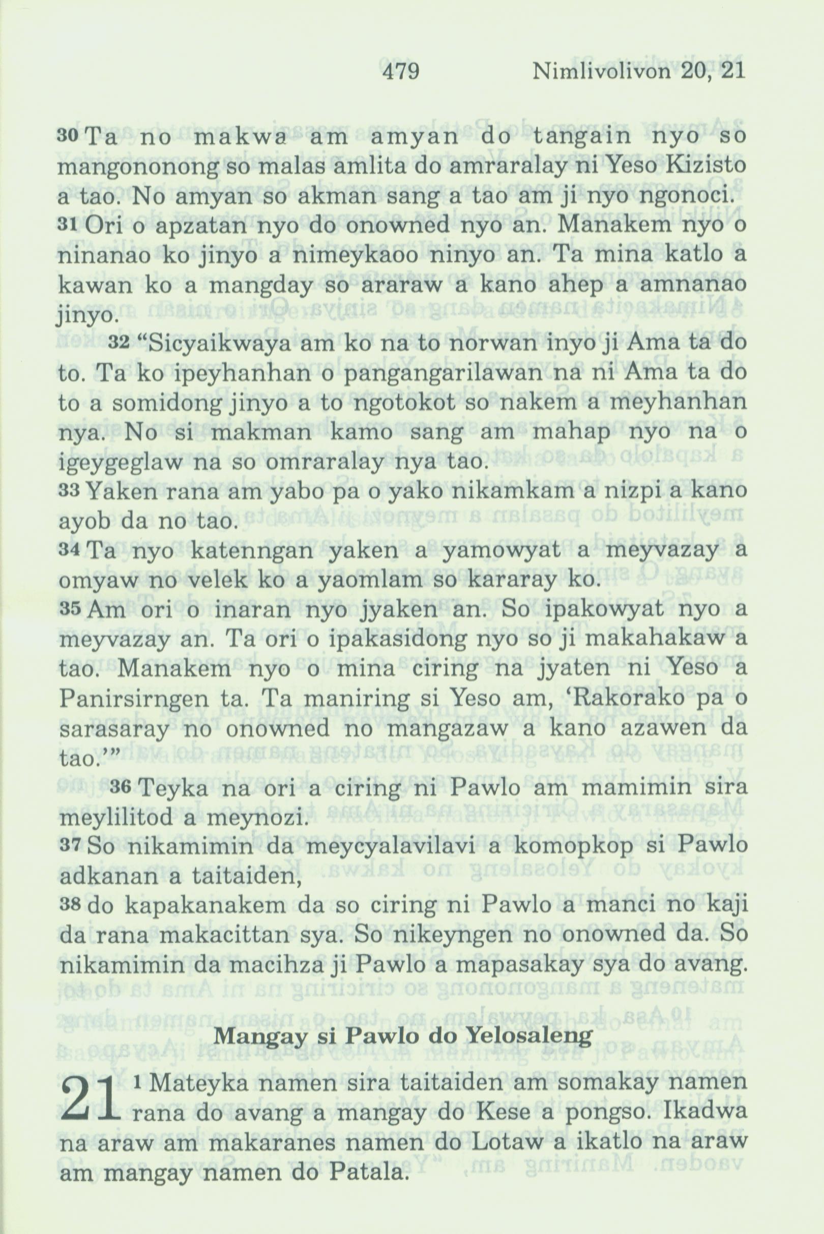 1994年新约全书 使徒行传 20 章 30 节到 21 章 1 节