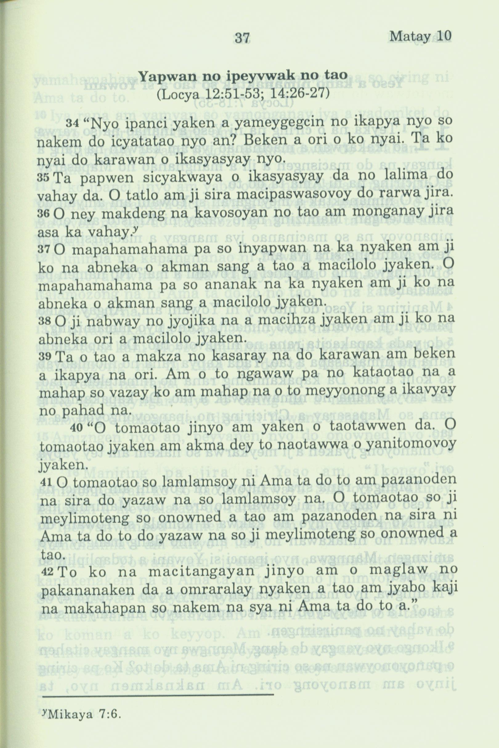 1994年新约全书 马太福音 10 章 34 节到 10 章 42 节