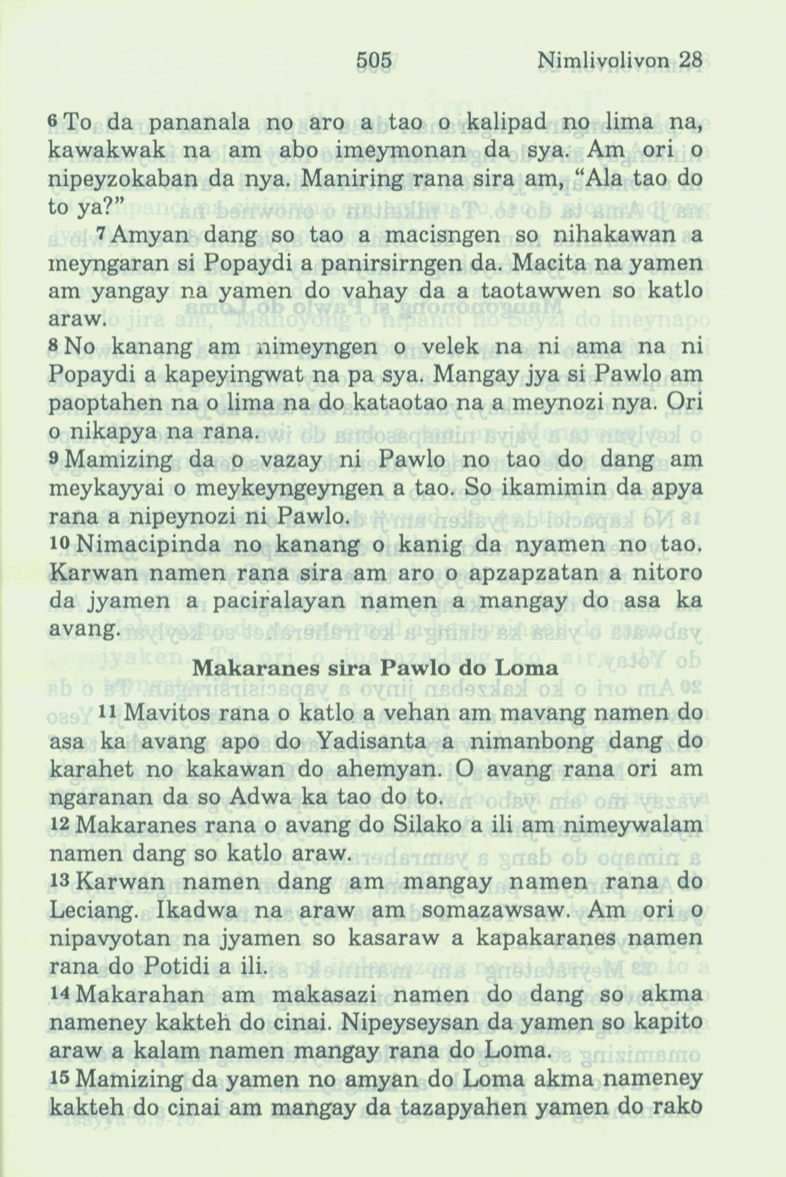 1994年新约全书 使徒行传 28 章 6 节到 28 章 15 节