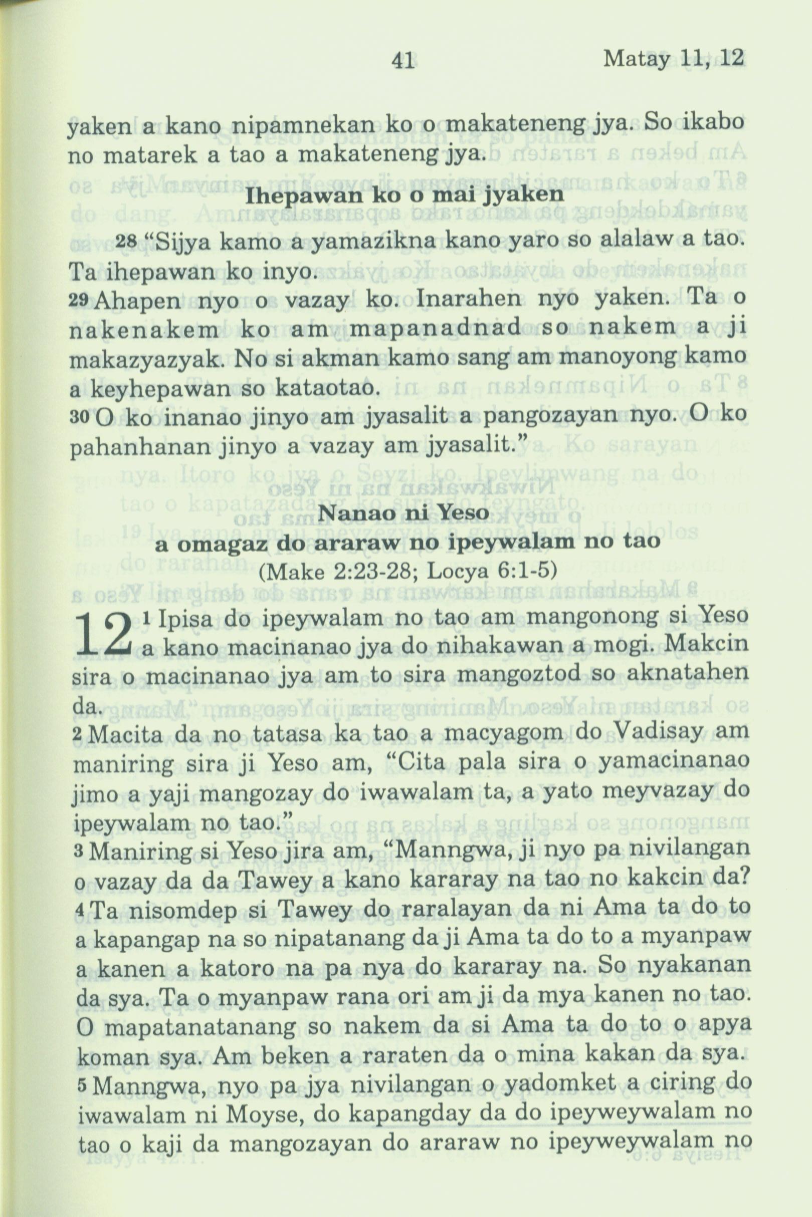 1994年新约全书 马太福音 11 章 28 节到 12 章 5 节