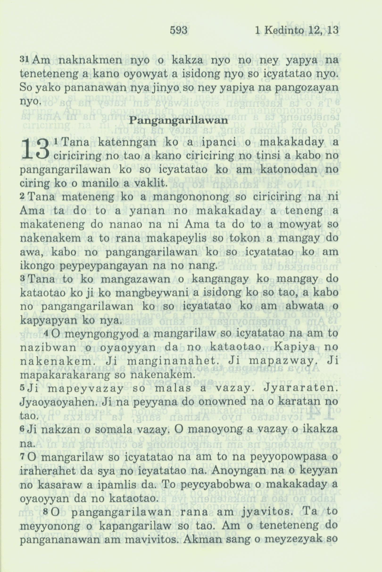 1994年新约全书 哥林多前书 12 章 31 节到 13 章 8 节