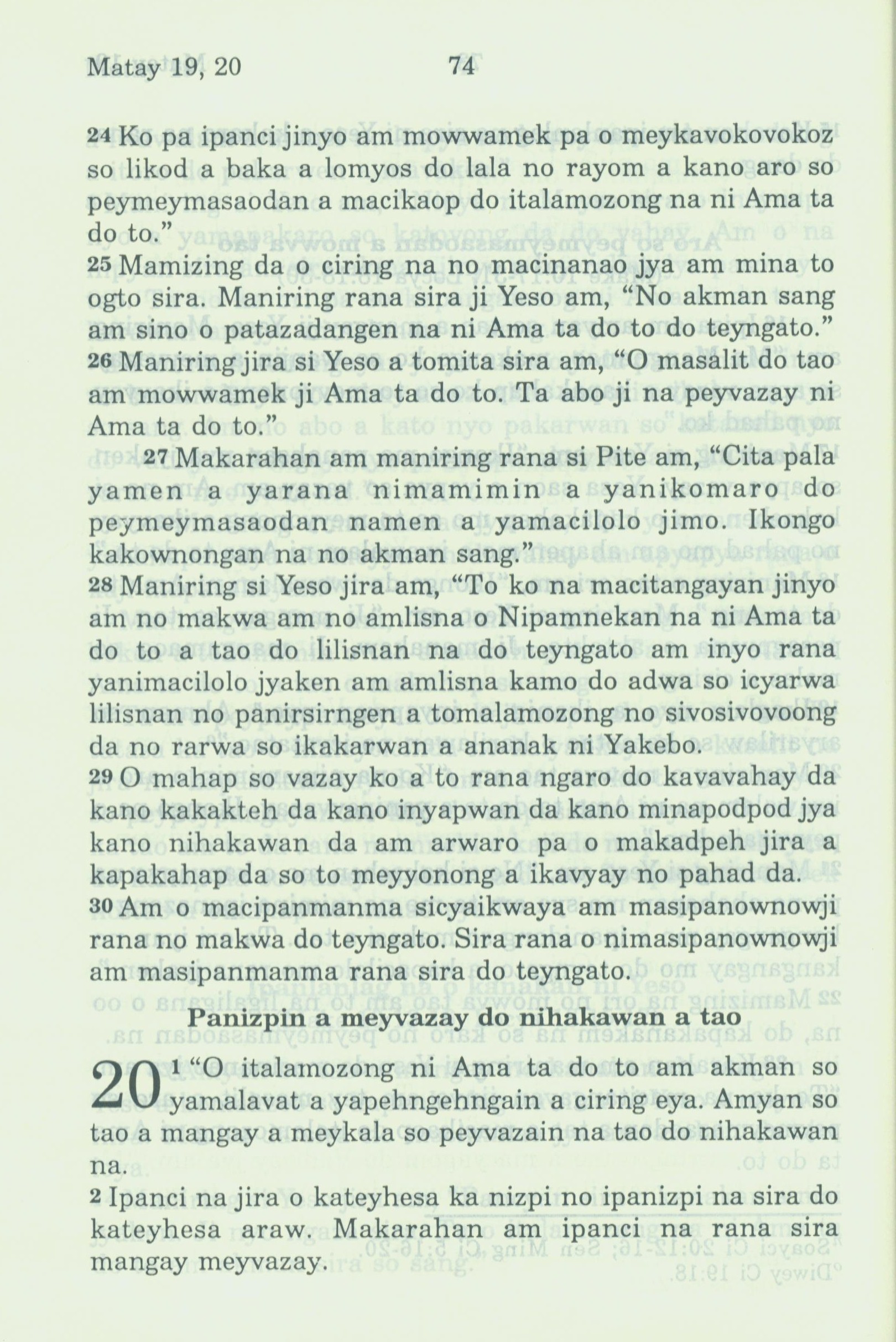 1994年新约全书 马太福音 19 章 24 节到 20 章 2 节