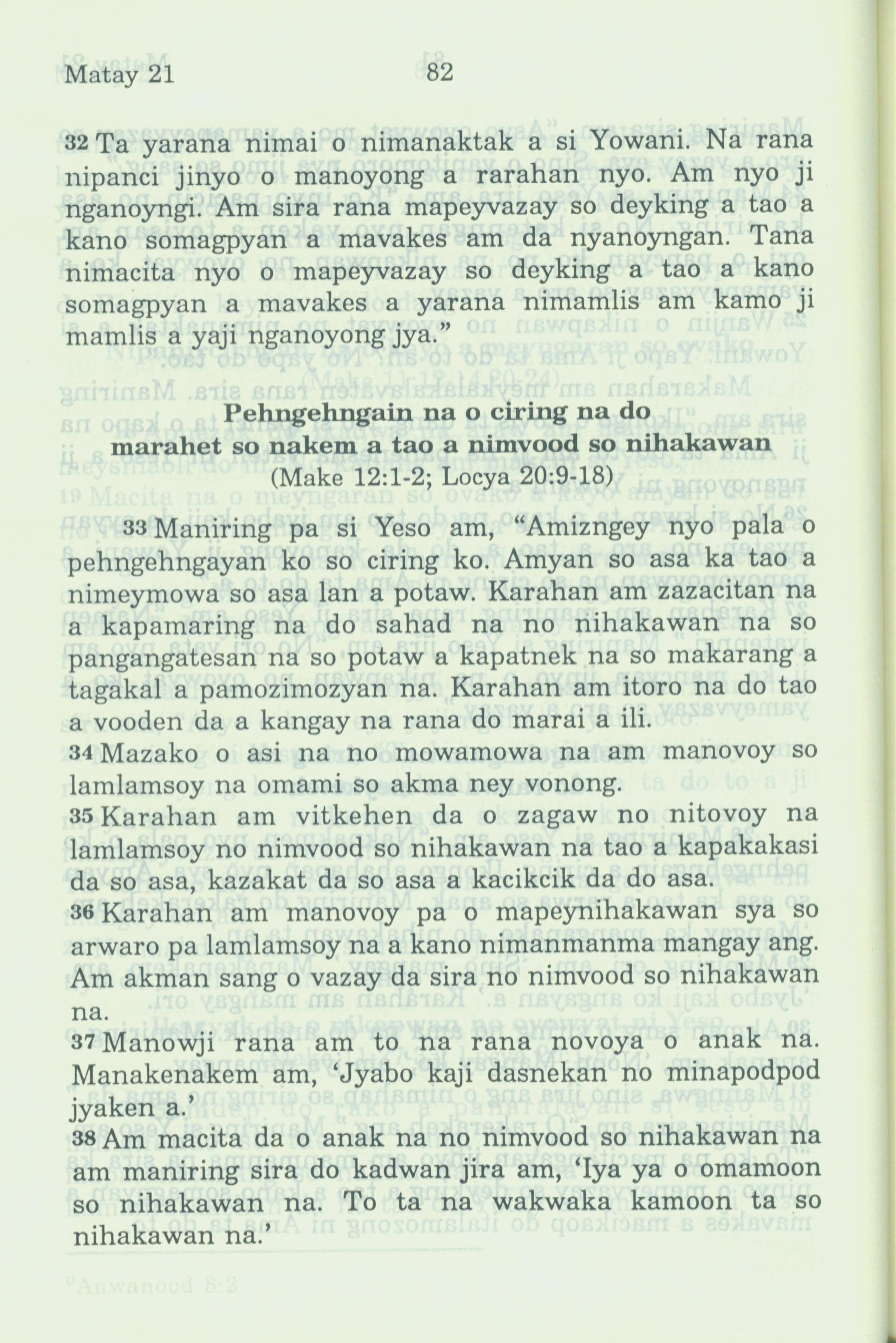 1994年新约全书 马太福音 21 章 32 节到 21 章 38 节