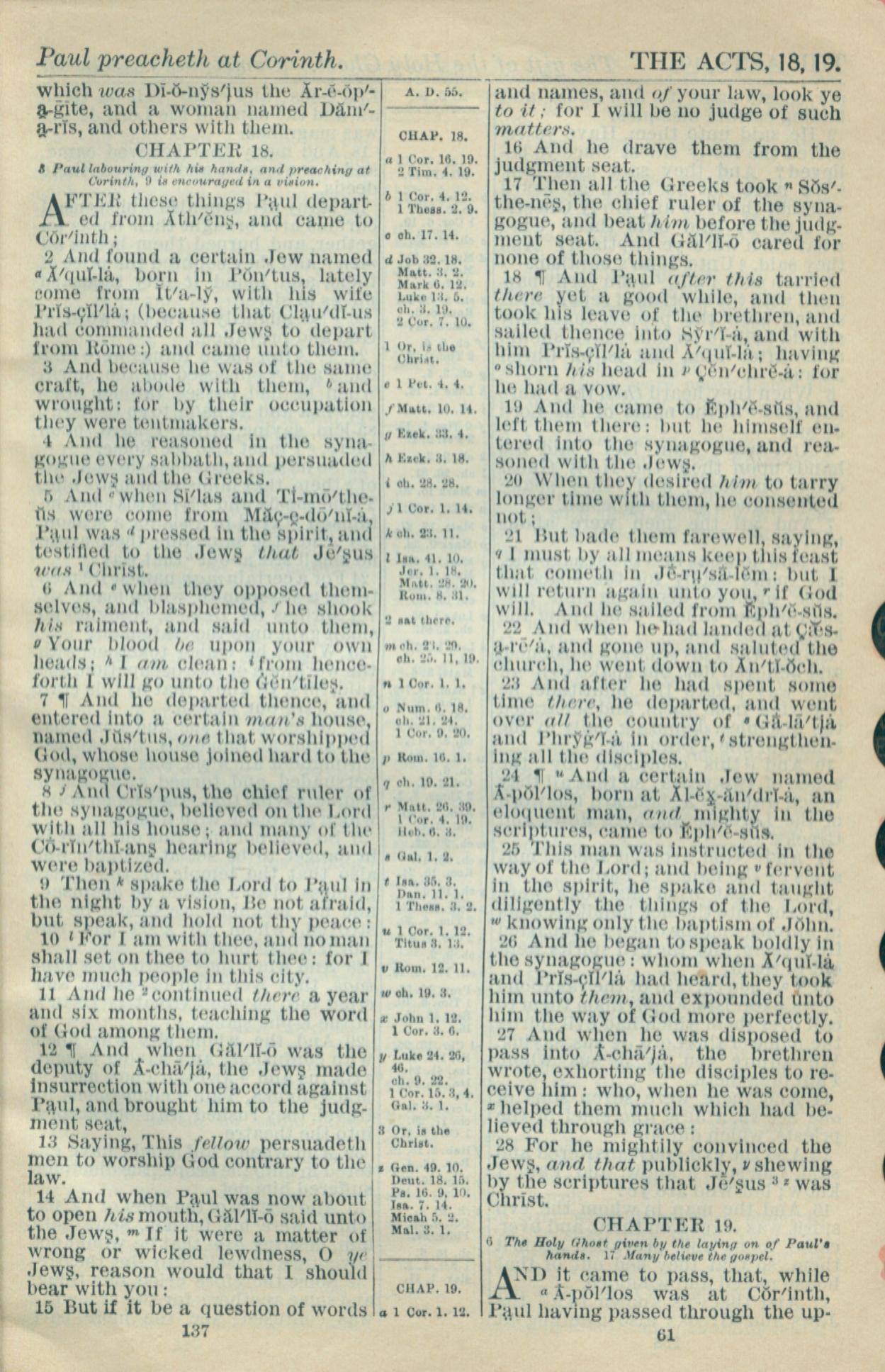 1916年Holy Bible 使徒行传 18 章 1 节到 19 章 1 节