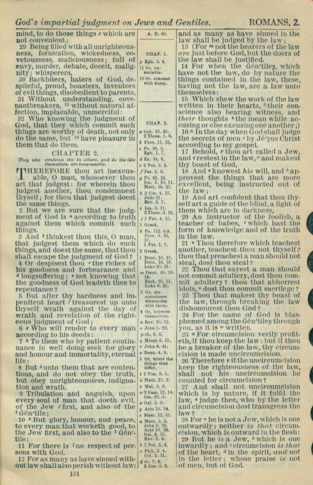 1916年Holy Bible 罗马书 1 章 29 节到 2 章 29 节