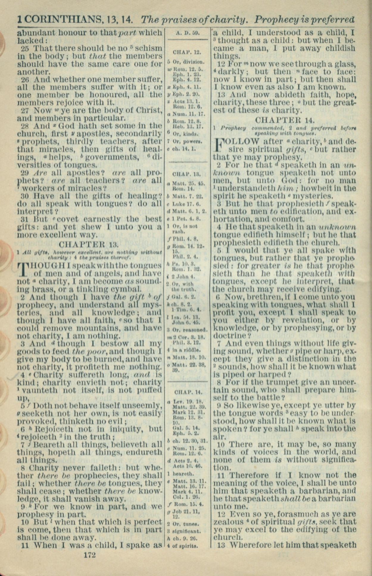 1916年Holy Bible 哥林多前书 12 章 25 节到 14 章 13 节