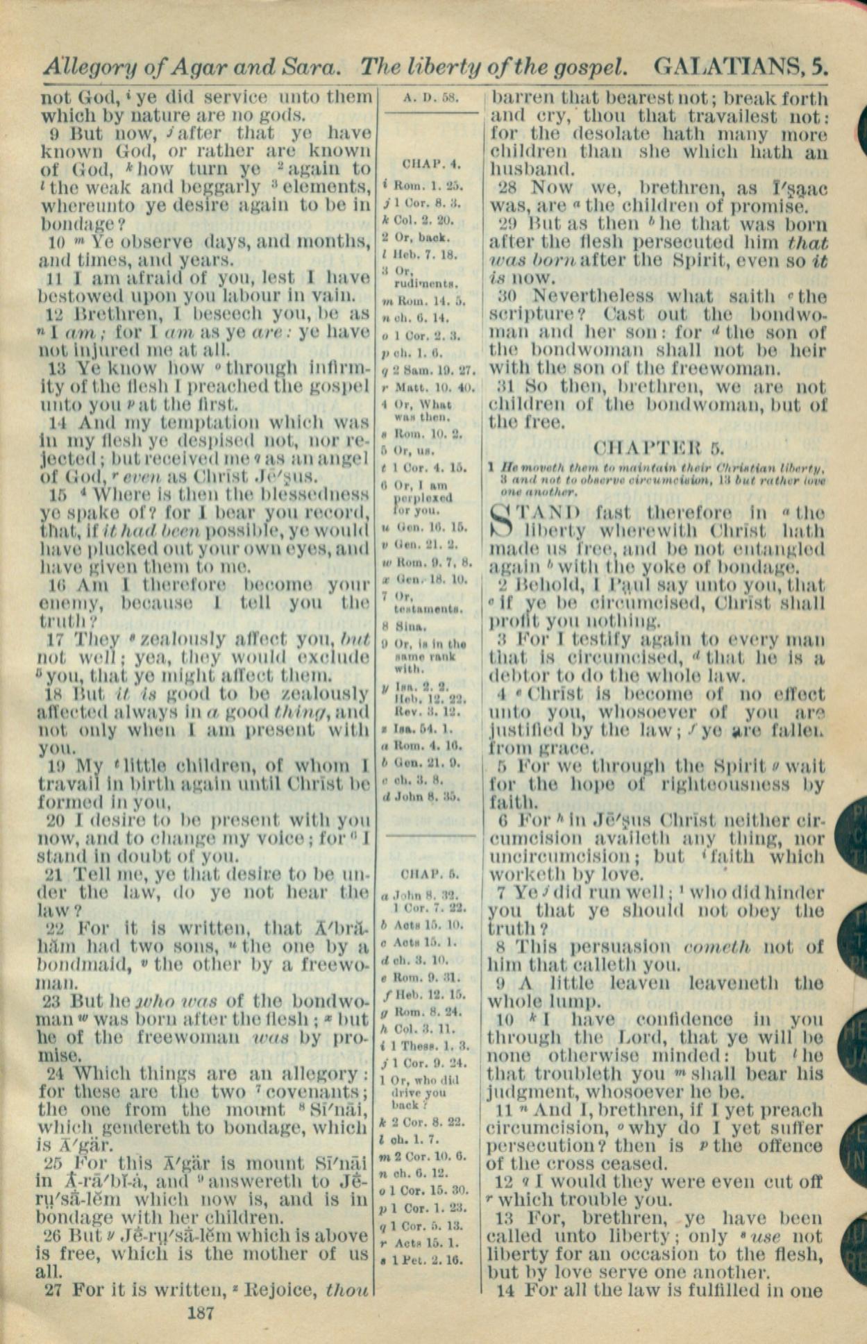 1916年Holy Bible 加拉太书 4 章 9 节到 5 章 14 节