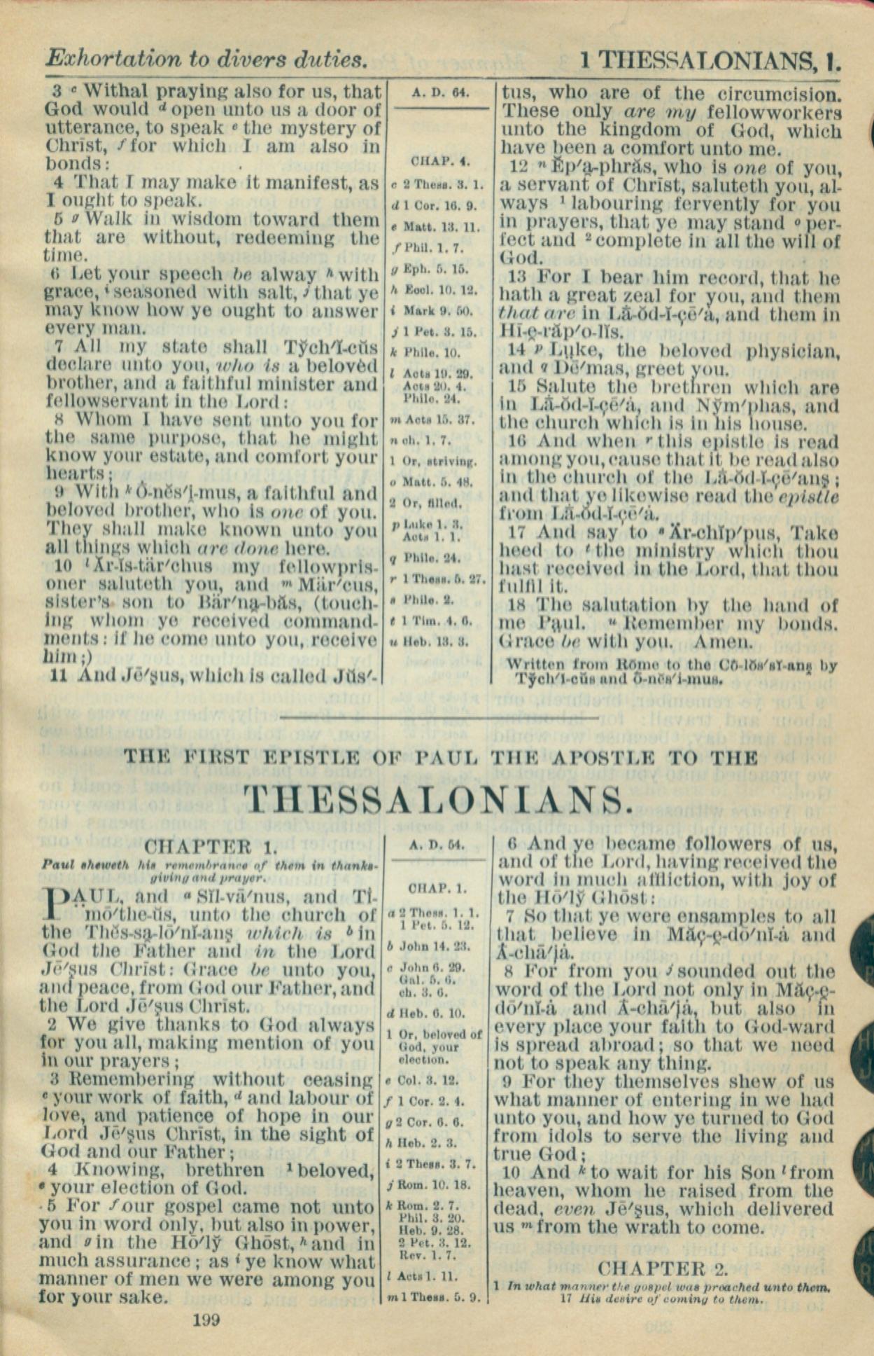 1916年Holy Bible 帖撒罗尼迦前书 1 章 1 节到 1 章 10 节