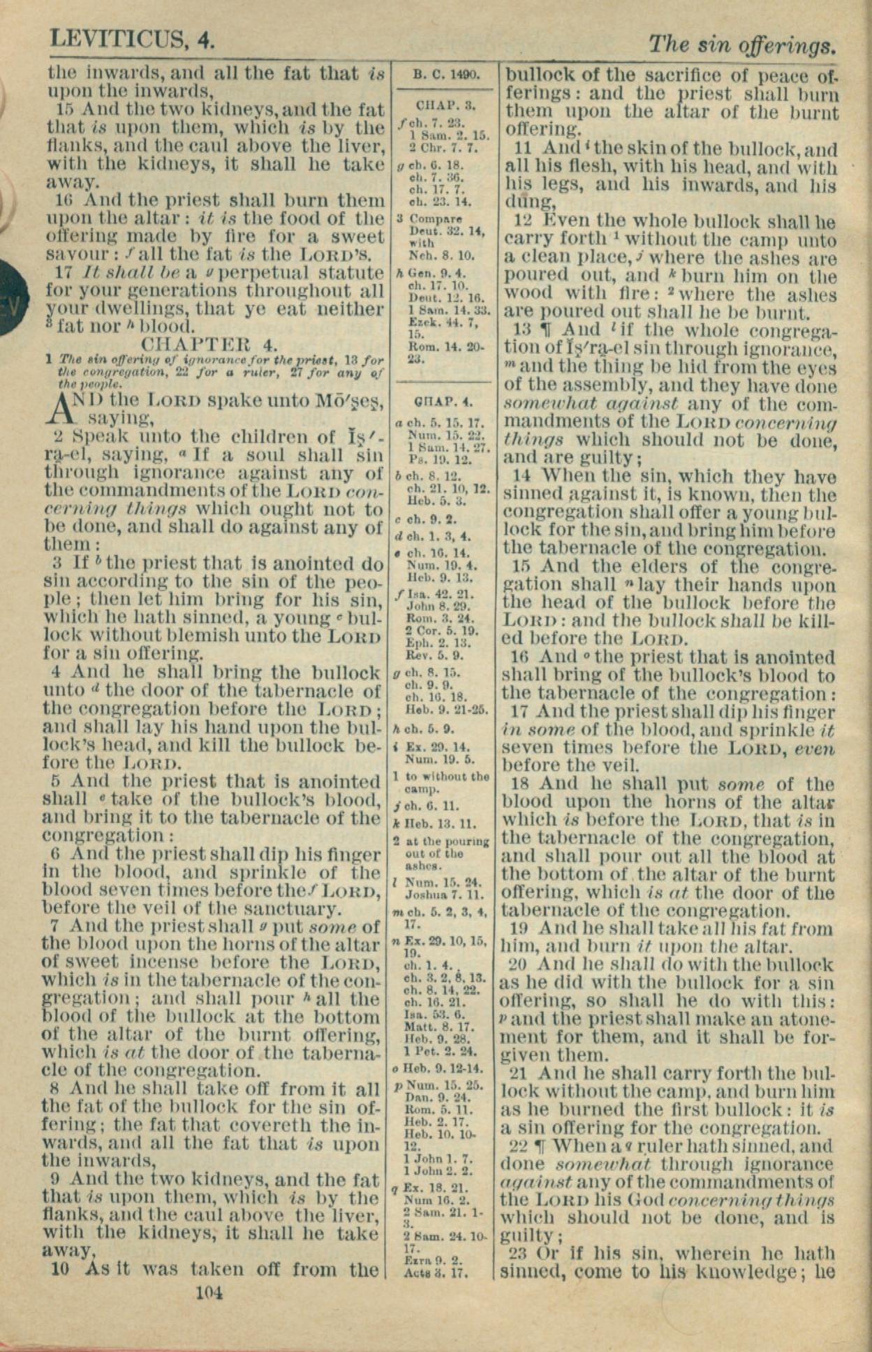 1916年Holy Bible 利未记 3 章 15 节到 4 章 23 节