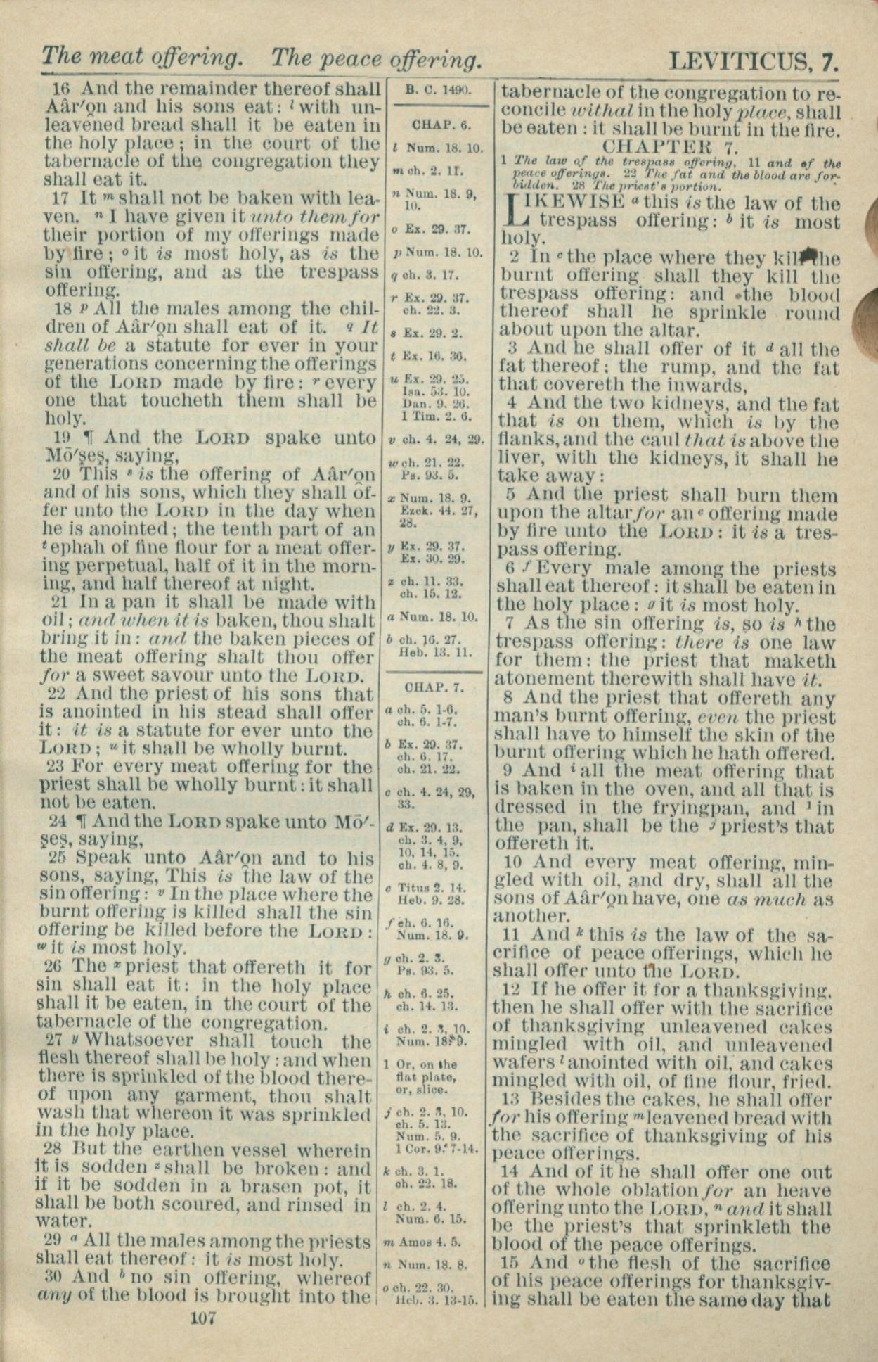 1916年Holy Bible 利未记 6 章 16 节到 7 章 15 节