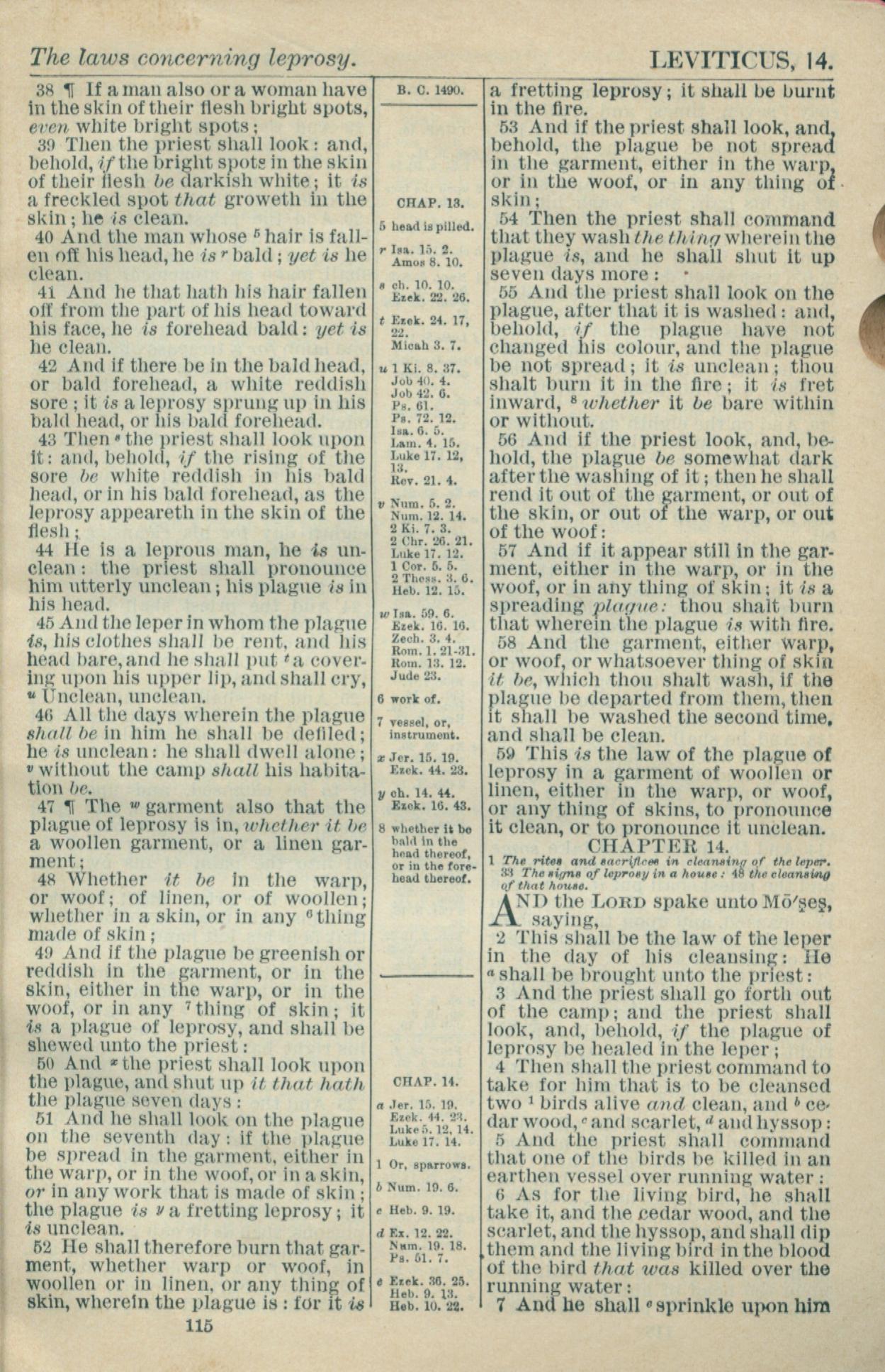 1916年Holy Bible 利未记 13 章 38 节到 14 章 7 节