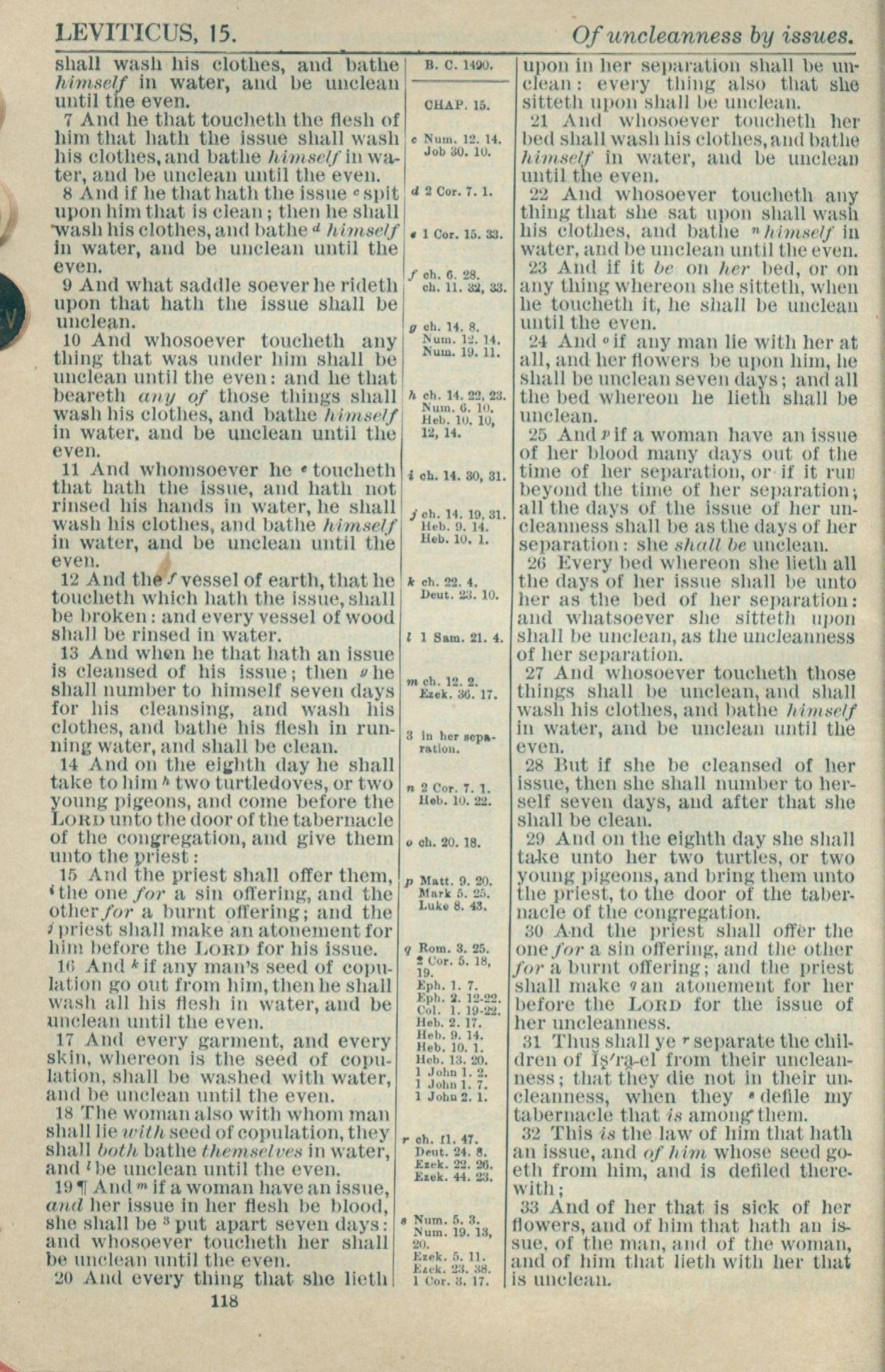 1916年Holy Bible 利未记 15 章 7 节到 15 章 33 节