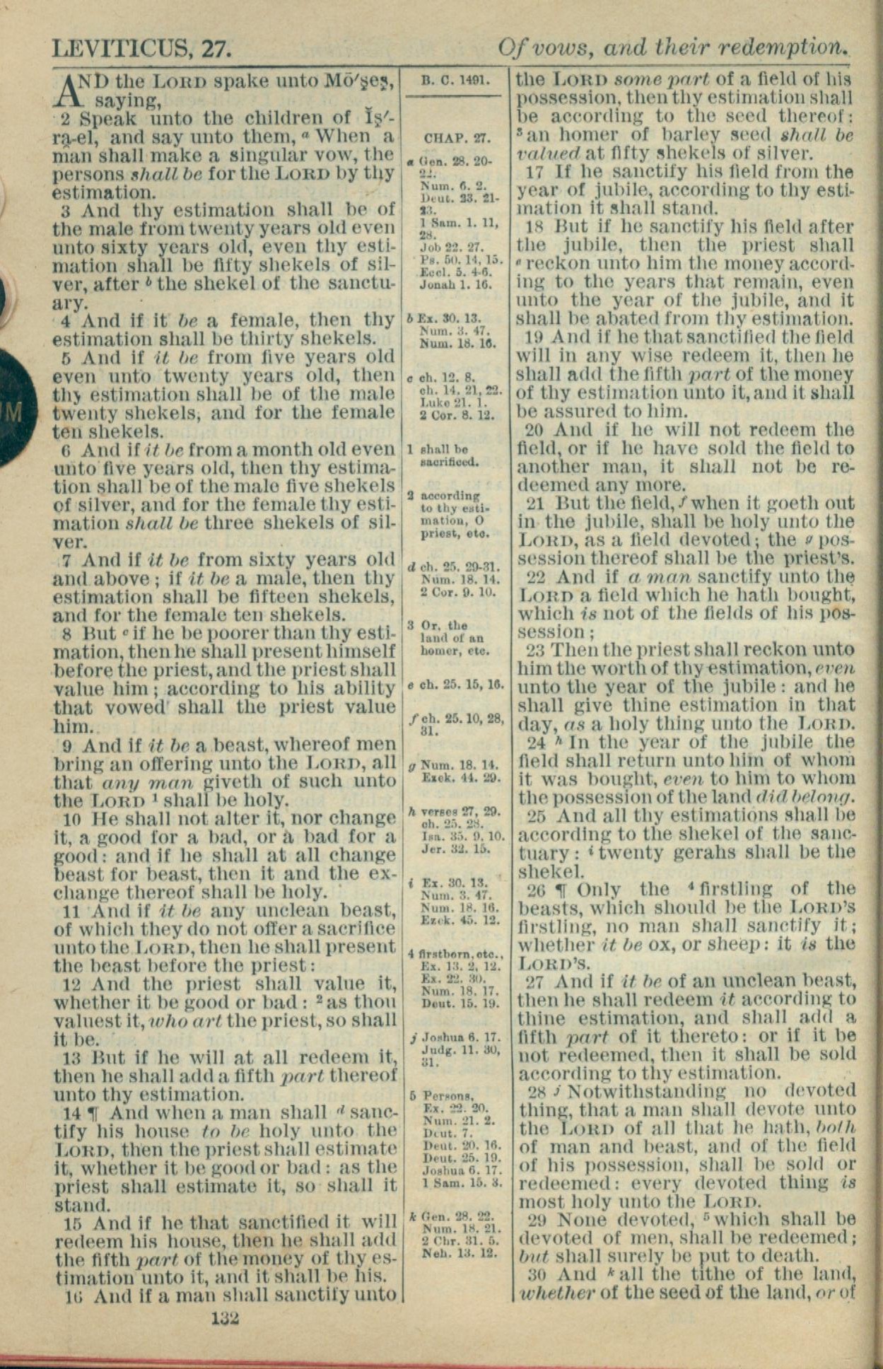 1916年Holy Bible 利未记 27 章 1 节到 27 章 30 节