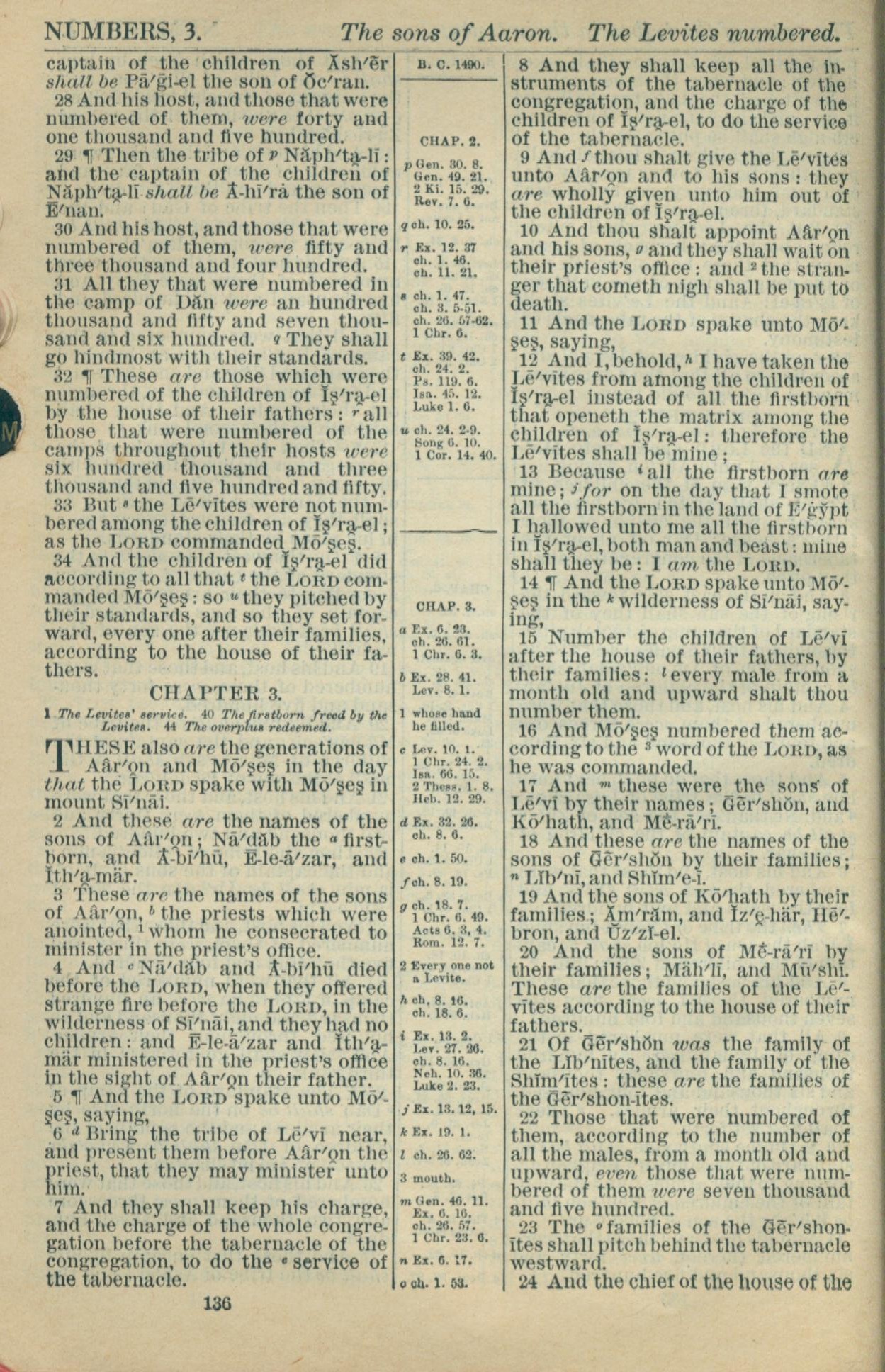 1916年Holy Bible 民数记 2 章 28 节到 3 章 24 节