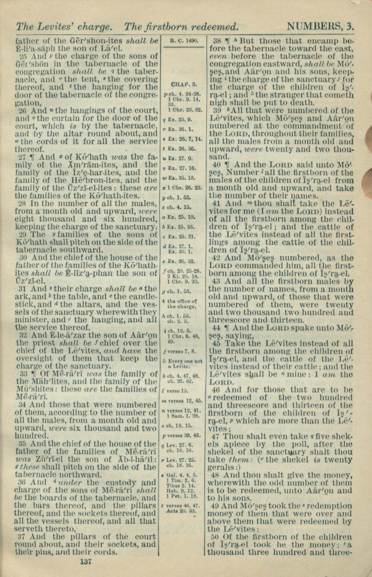 1916年Holy Bible 民数记 3 章 25 节到 3 章 50 节
