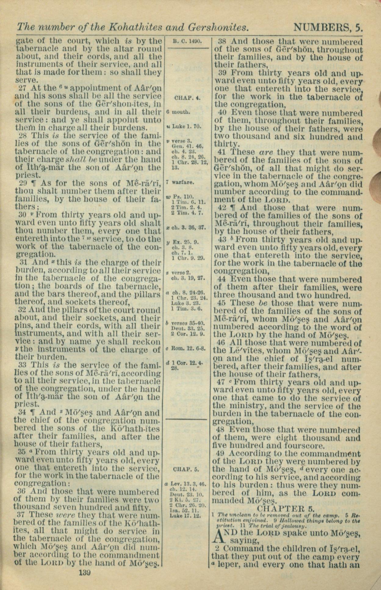 1916年Holy Bible 民数记 4 章 27 节到 5 章 2 节