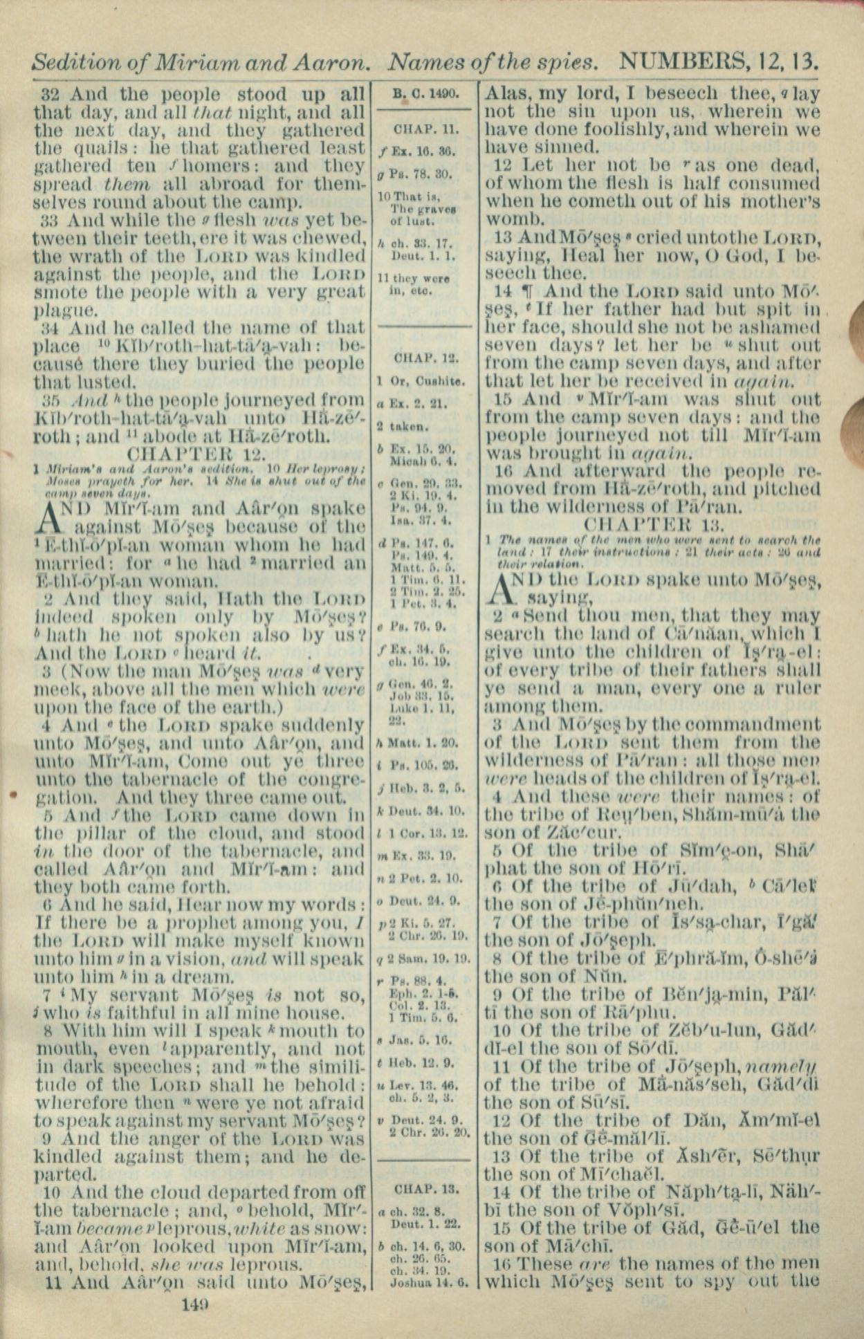 1916年Holy Bible 民数记 11 章 32 节到 13 章 16 节