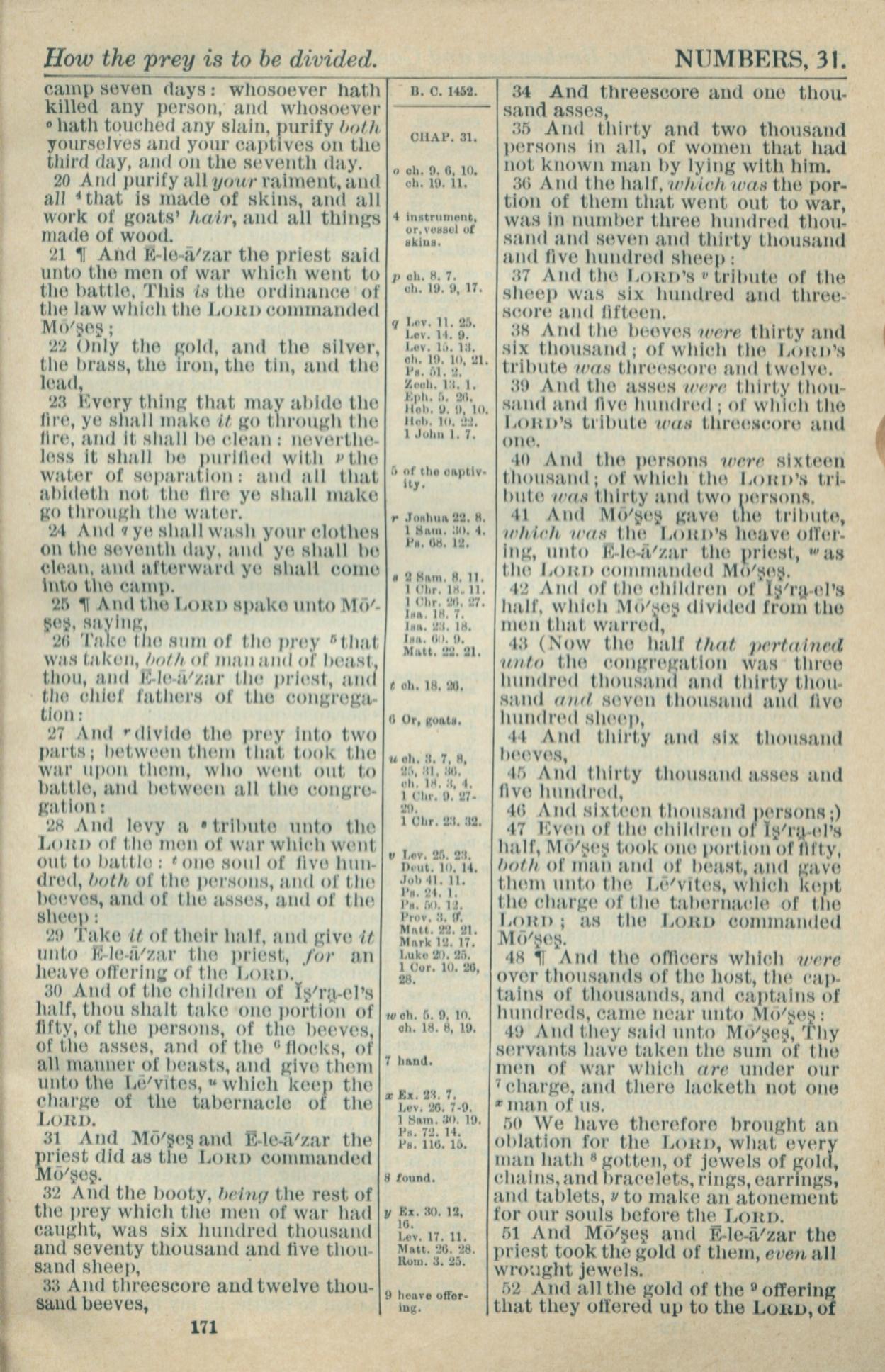 1916年Holy Bible 民数记 31 章 20 节到 31 章 52 节