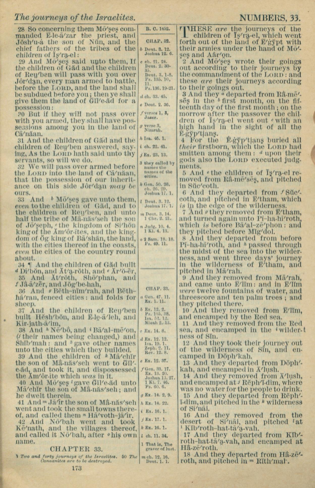 1916年Holy Bible 民数记 32 章 28 节到 33 章 18 节