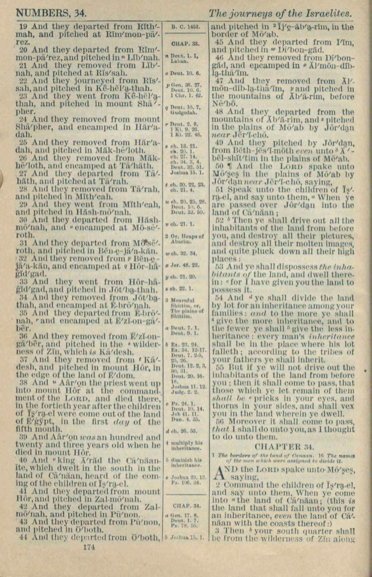 1916年Holy Bible 民数记 33 章 19 节到 34 章 3 节