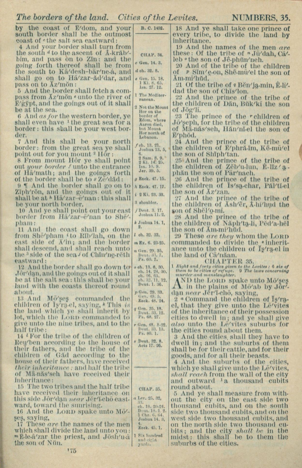 1916年Holy Bible 民数记 34 章 4 节到 35 章 5 节