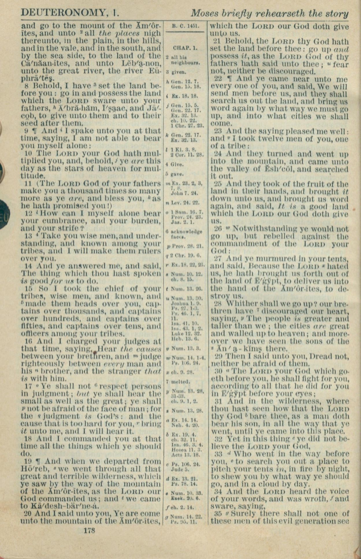 1916年Holy Bible 申命记 1 章 8 节到 1 章 35 节