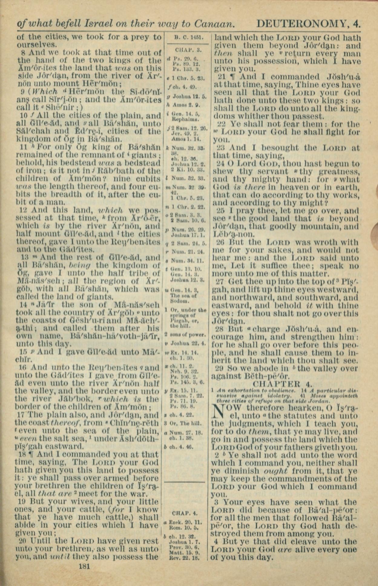 1916年Holy Bible 申命记 3 章 8 节到 4 章 4 节