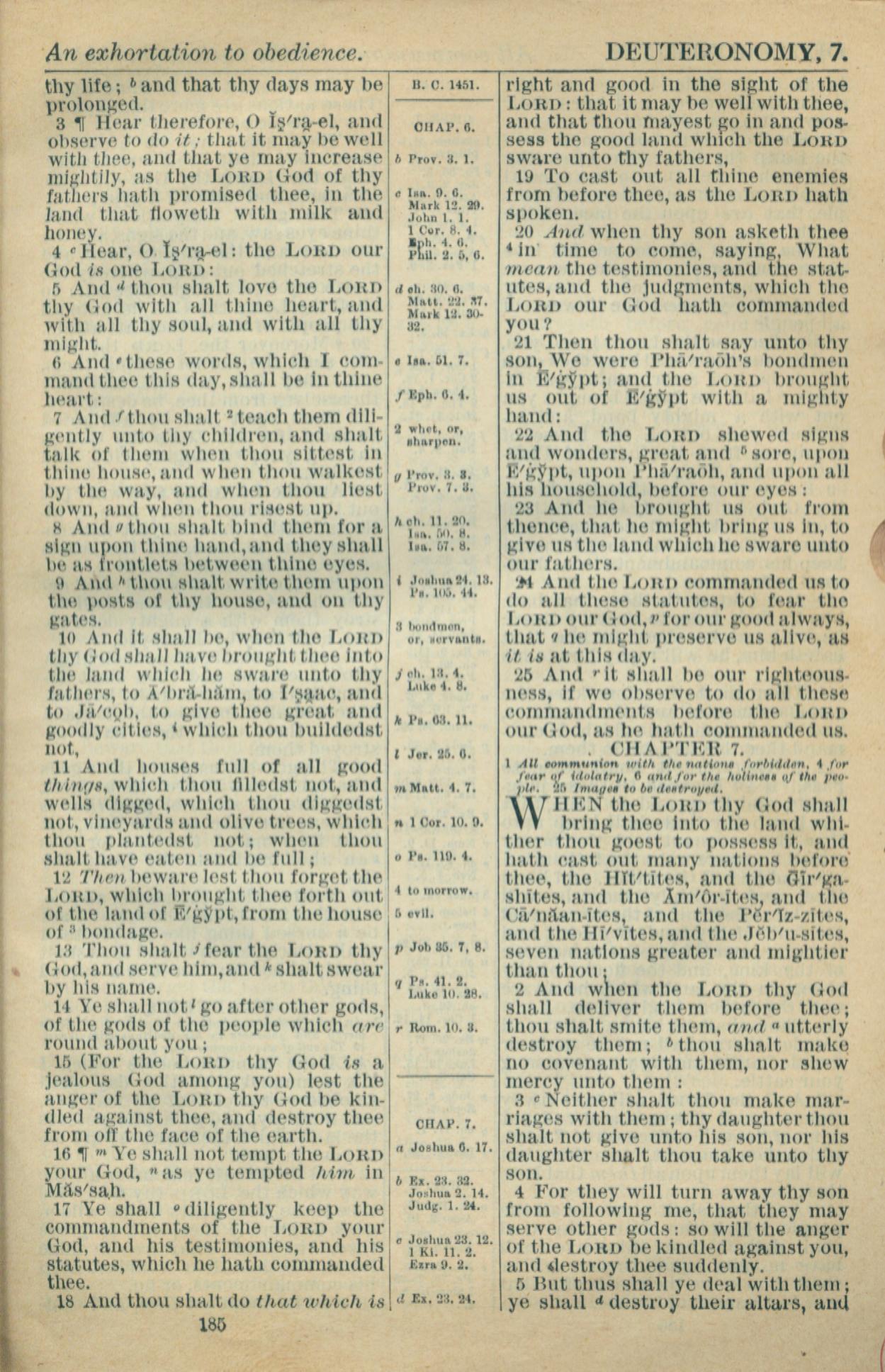 1916年Holy Bible 申命记 6 章 3 节到 7 章 5 节