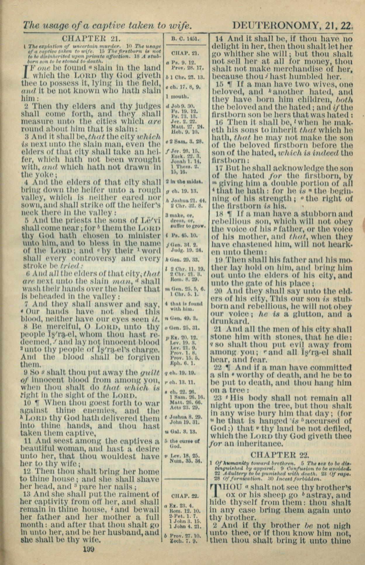1916年Holy Bible 申命记 21 章 1 节到 22 章 2 节