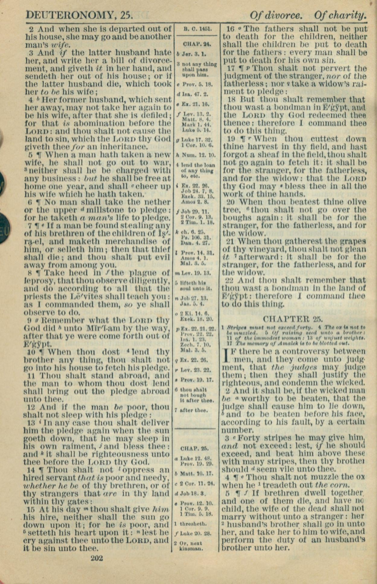 1916年Holy Bible 申命记 24 章 2 节到 25 章 5 节