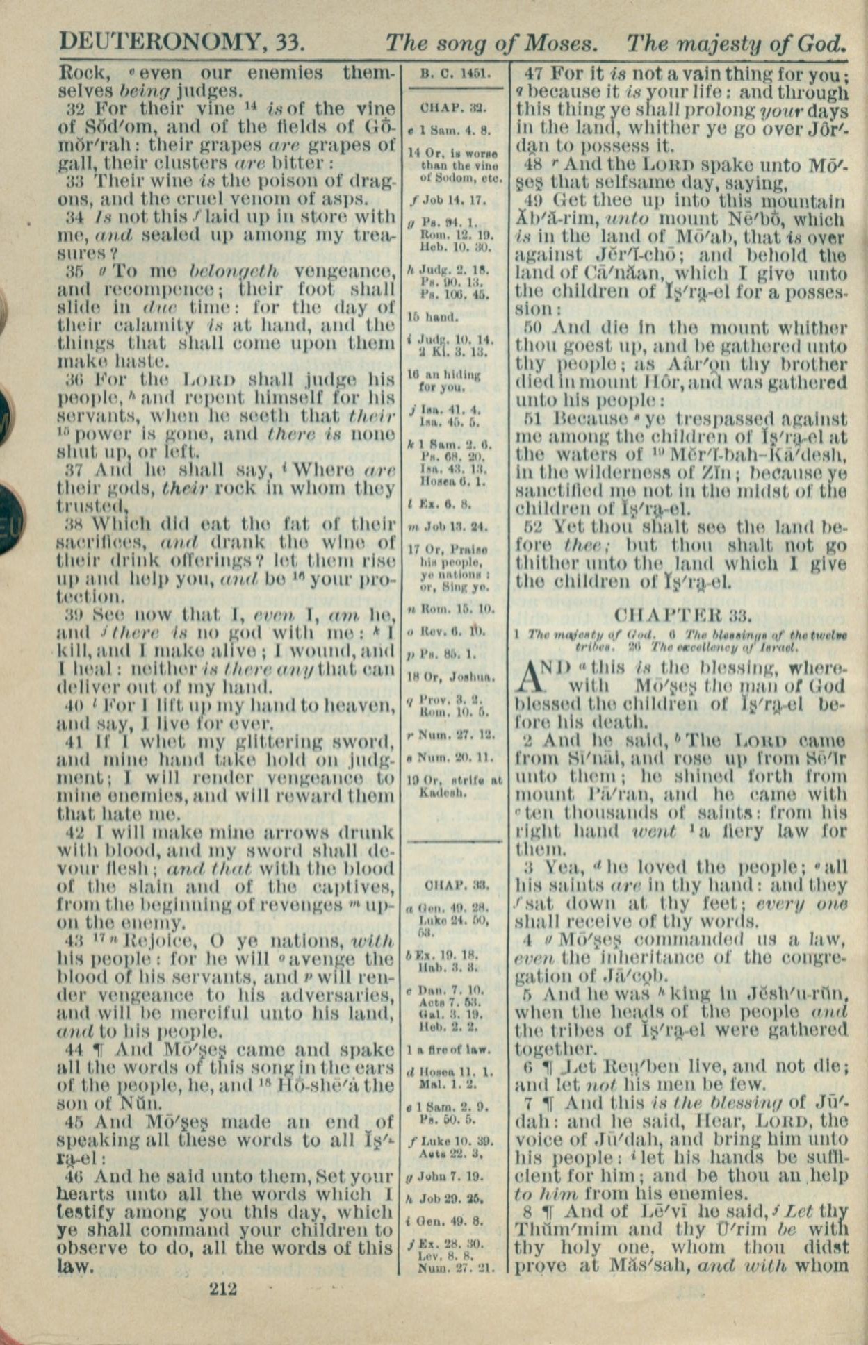 1916年Holy Bible 申命记 32 章 32 节到 33 章 8 节