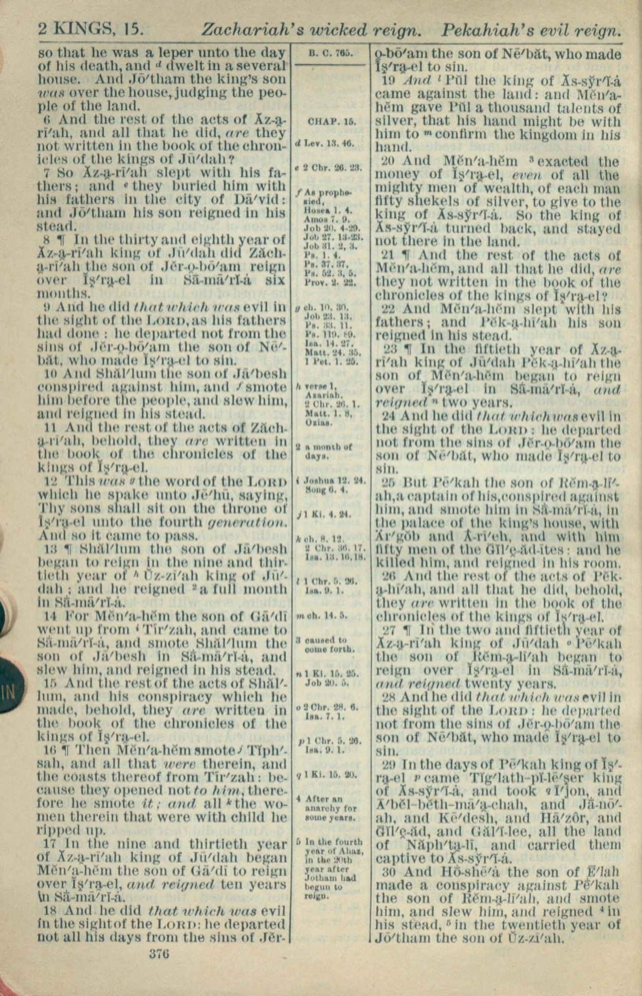 1916年Holy Bible 列王纪下 15 章 6 节到 15 章 30 节