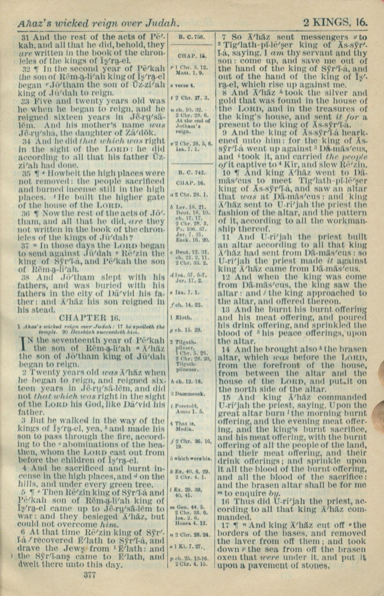 1916年Holy Bible 列王纪下 15 章 31 节到 16 章 17 节