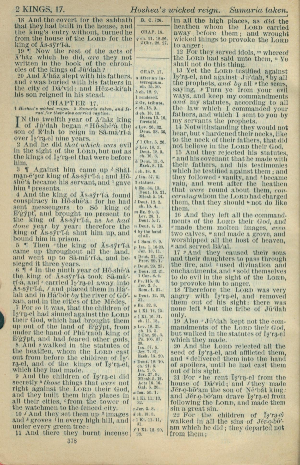 1916年Holy Bible 列王纪下 16 章 18 节到 17 章 22 节