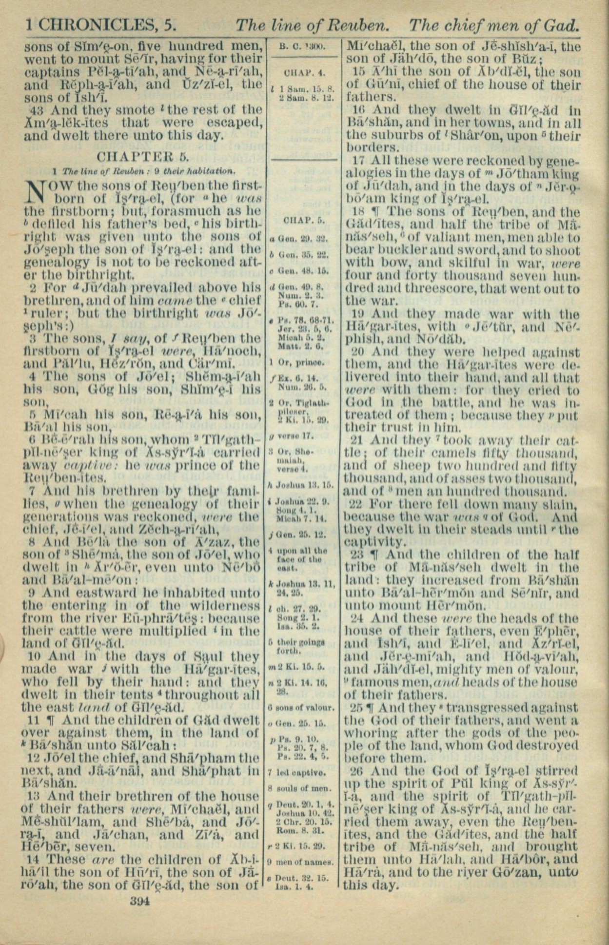 1916年Holy Bible 历代志上 4 章 43 节到 5 章 26 节